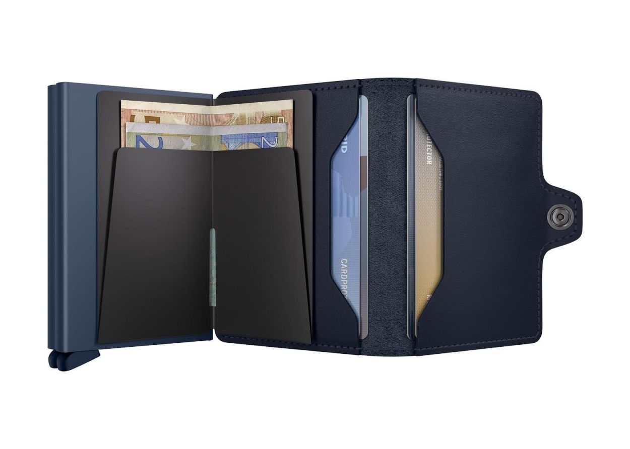 Uitgerust met twee Cardprotectors biedt de Twinwallet ruimte voor 16 kaarten, bankbiljetten en bonnetjes. De grootste wallet, maar nog steeds compact van formaat. Samen met een stevige sluiting en omhulsel om extra kaarten, bankbiljetten en bonnen op te bergen, kan de Twinwallet veel kwijt, maar blijft het compact van formaat.