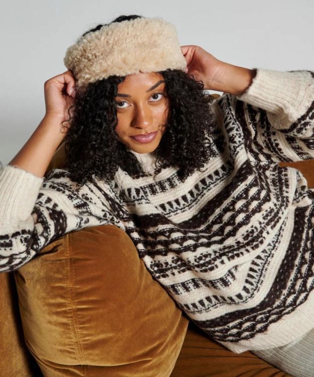 De structuur van de stof herinnert aan de bekende teddy-collecties van het merk. Dik en soepel tegelijk, houdt de haarband de oren goed warm en voelt aangenaam aan op de huid.
