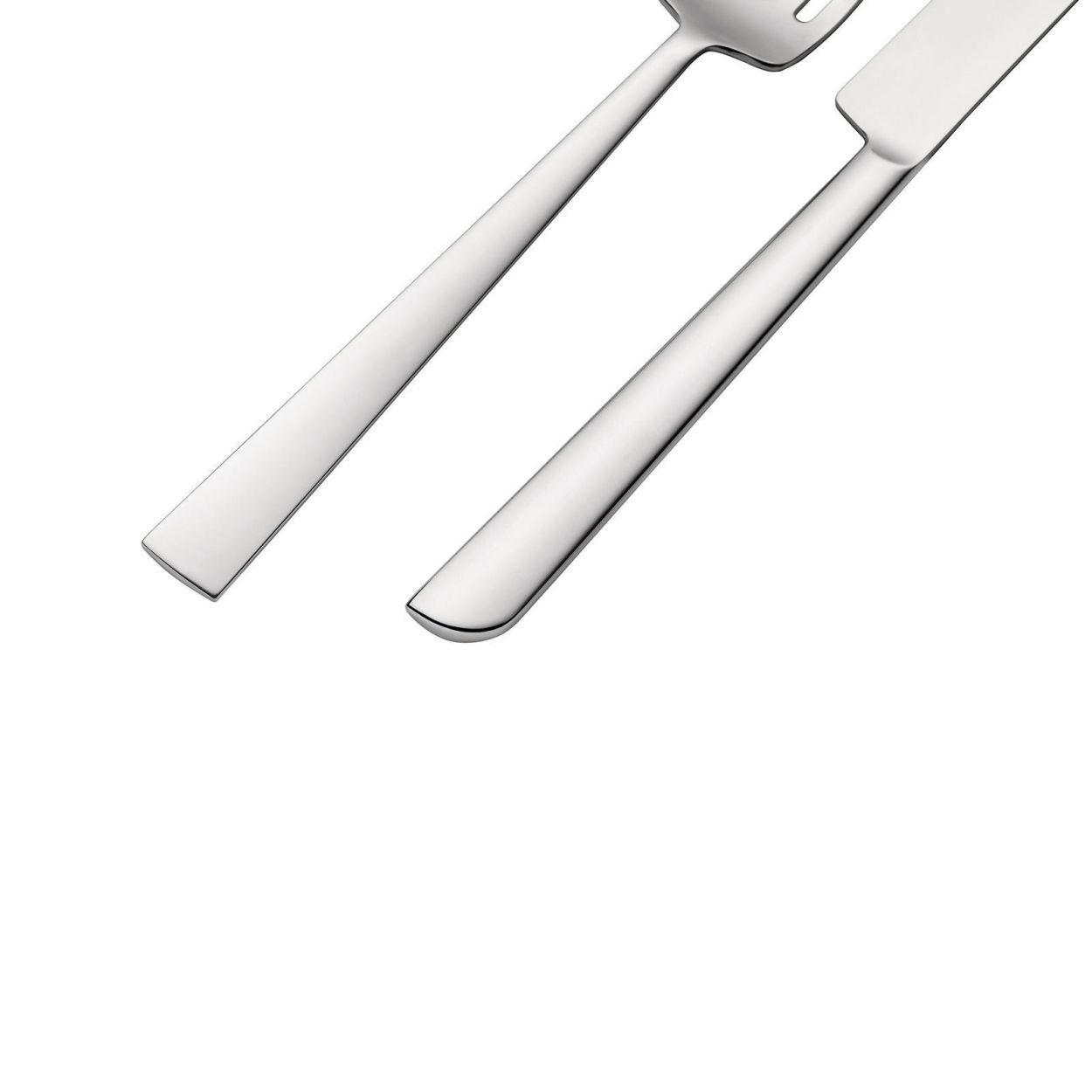 Het ontwerp van Asta speelt met contrast en balans: de slanke, rechte “asta” – Italiaans voor staaf – vormt de basis van het handvat en loopt vloeiend uit in de organisch gevormde kop. Het resultaat is een besteklijn waarin minimalisme en zachtheid elkaar subtiel ontmoeten.