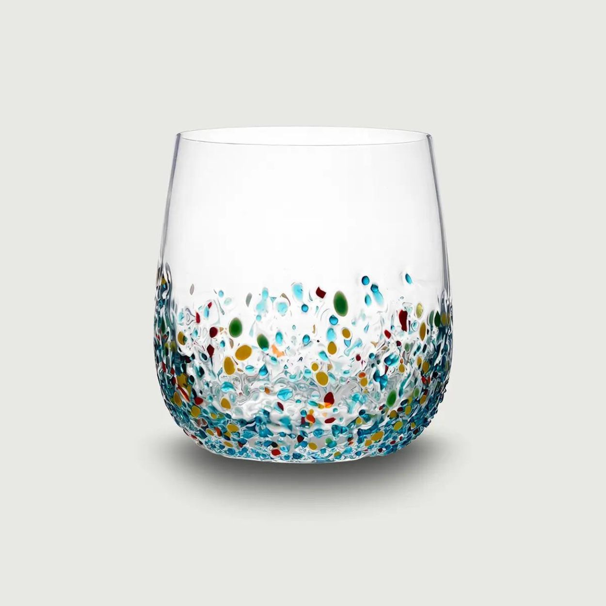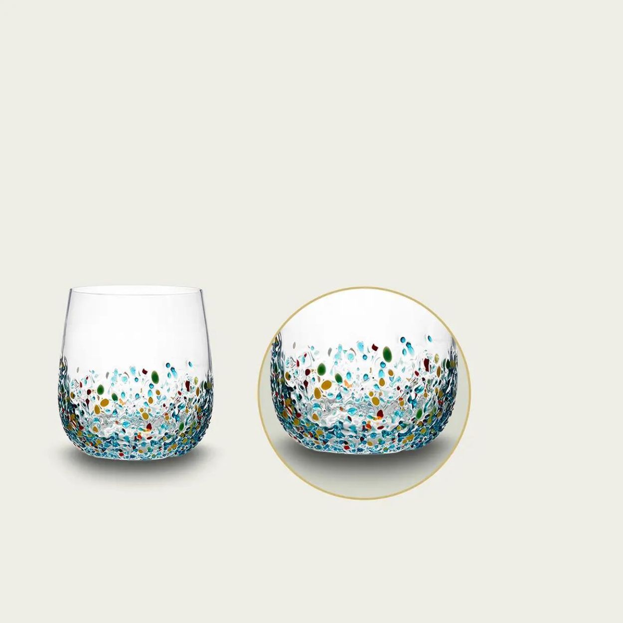 Deze glazen zijn gemaakt van hoogwaardig glas en schitteren door hun uitzonderlijke helderheid. De gekleurde bewerking op de bodem geeft elk glas een speelse, elegante touch – perfect voor feestjes, diners of een stijlvol drankje met vrienden.