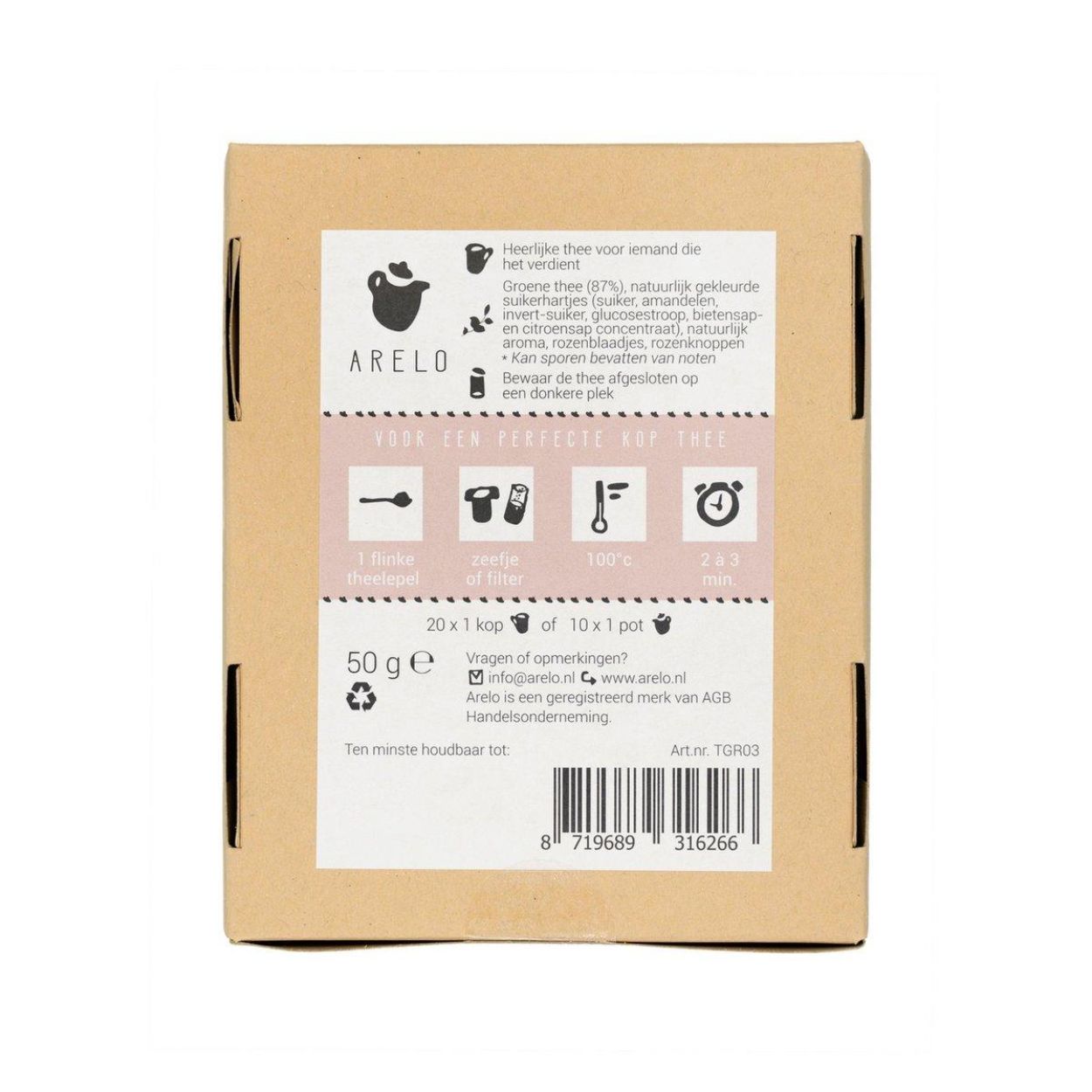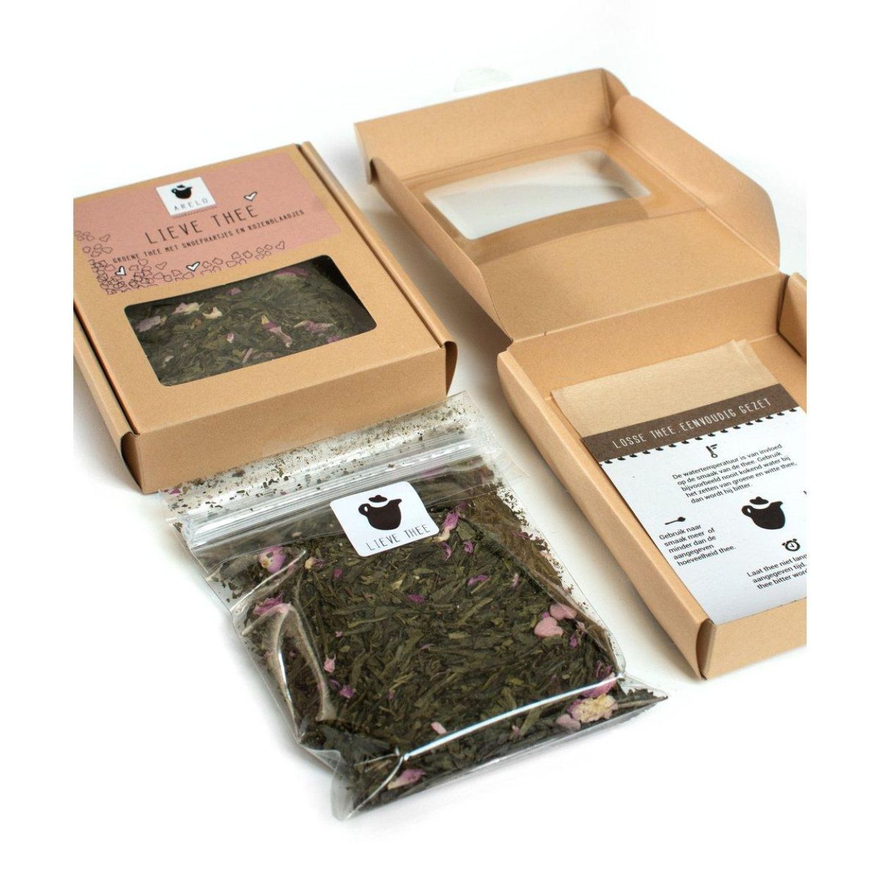 Soms zegt een kopje thee meer dan duizend woorden. Lieve Thee is een zachte groene thee met rozen en kleurrijke suikerhartjes die op een subtiele manier “ik denk aan je” fluisteren. De verfijnde smaak met een vleugje aardbei maakt deze blend perfect om te schenken aan iemand die je dierbaar is – of gewoon aan jezelf.