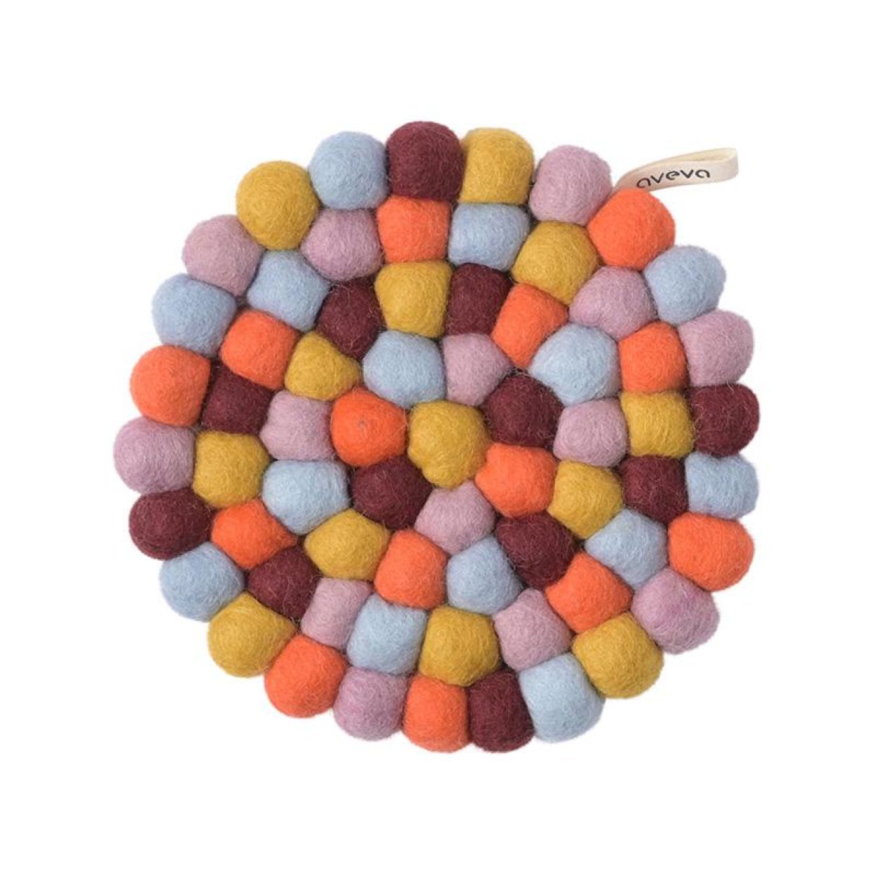 Deze onderzetters van Aveva zijn handgemaakt van 100% wol, wat een zacht en robuust gevoel geeft. Perfect om warme potten op te plaatsen omdat wol als materiaal zowel vuil- als hitteafstotend is. De onderzetters beschermen, decoreren en kleuren de tafel. Net als alle wollen producten van Aveva is deze onderzetter gemaakt van hoogwaardige wol, met kleuren zonder AZO en is natuurlijk hitte- en vlekbestendig. Alle onderzetters hebben een lus om op te hangen, zodat ze zowel de muur als de tafel kunnen versieren.