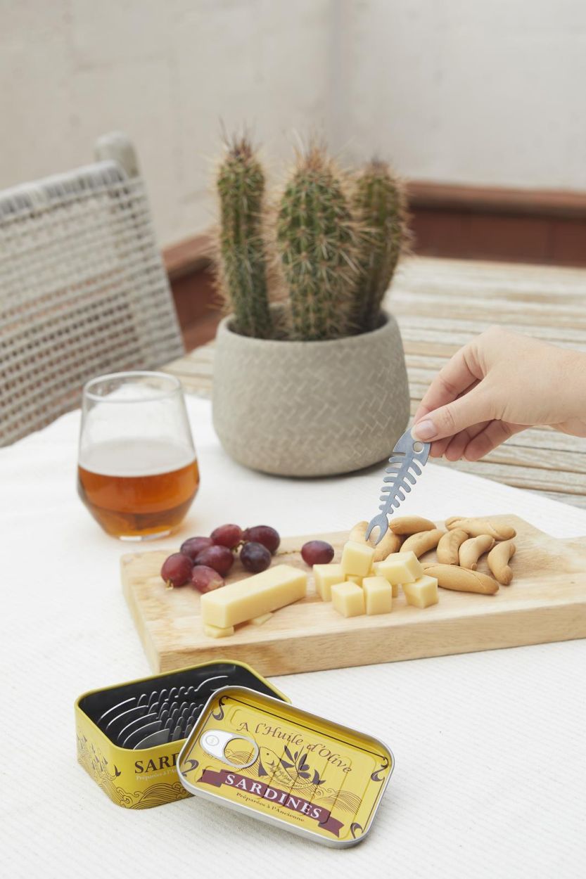 Alsof je een blik sardientjes opent – maar dan met zes apero-vorkjes erin. Duurzaam, speels en gemaakt voor gezellige borrelmomenten. Een cadeau met een knipoog en veel gebruiksgemak.