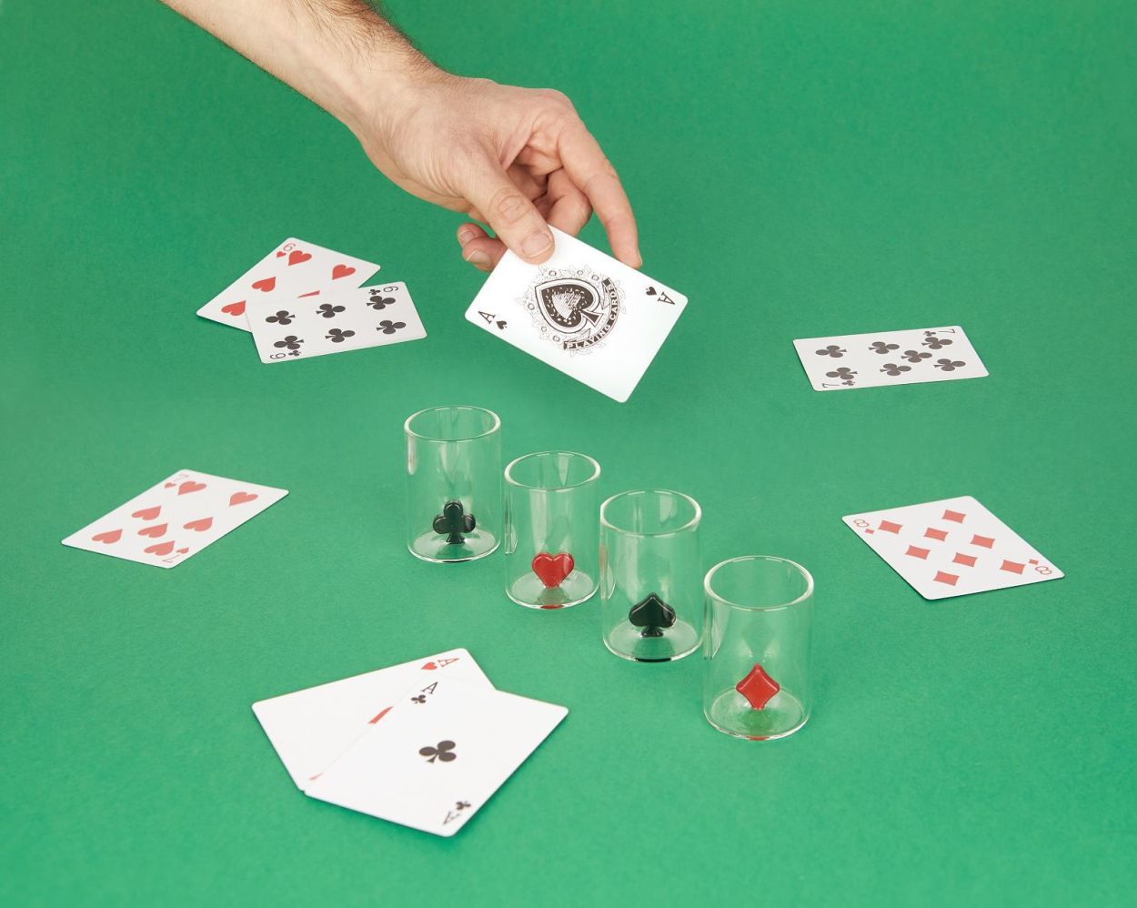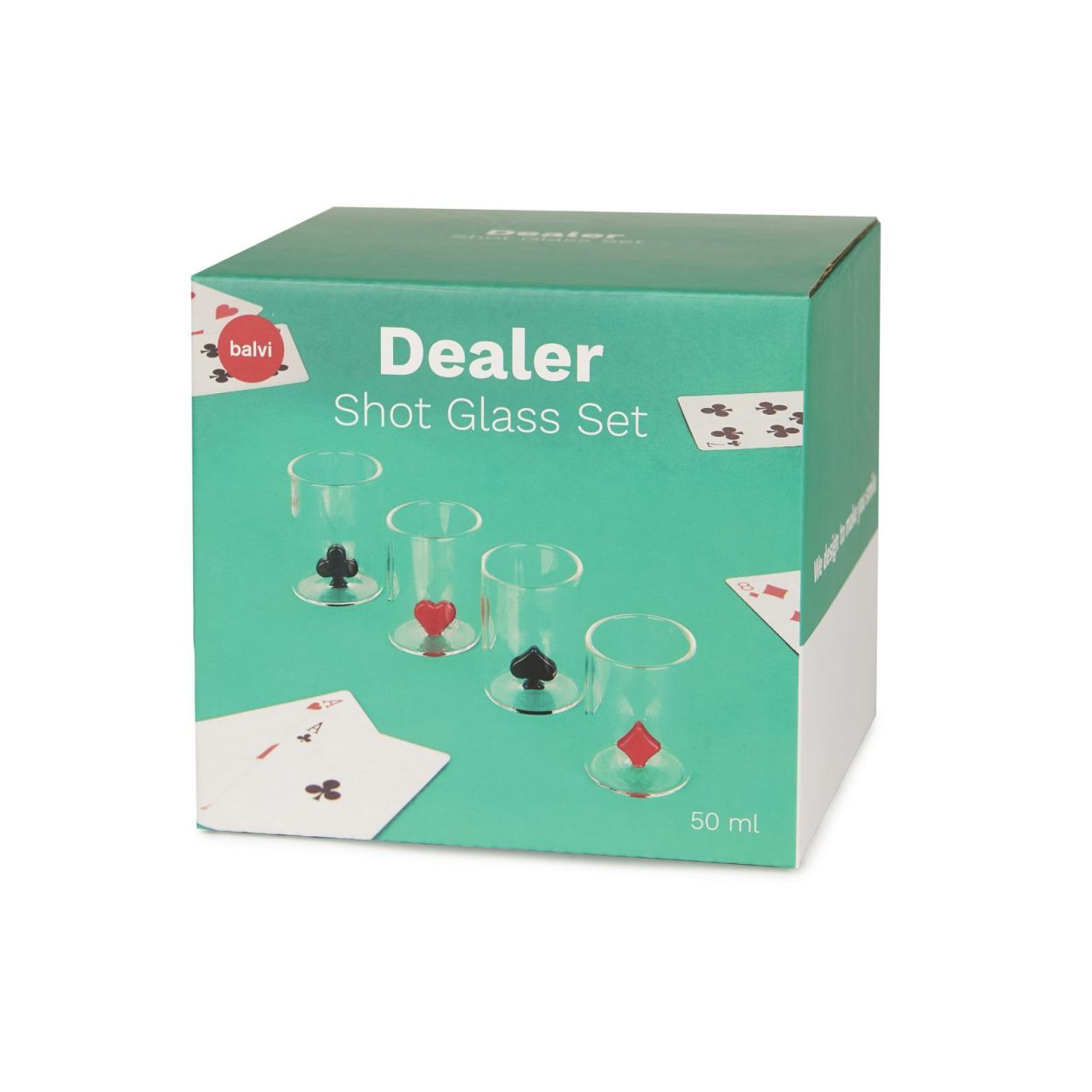 Gemaakt van stevig borosilicaatglas en met een inhoud van 50 ml zijn ze perfect voor toostjes met flair. Speels, chique en ideaal als cadeau voor kaartliefhebbers en spelavond-helden.