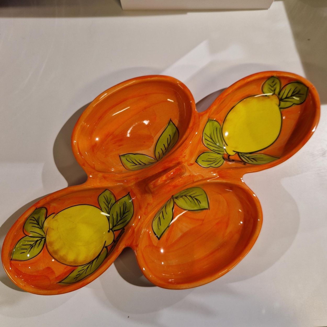 Deze toffe antipasti schaal, gemaakt in Italië, brengt meteen zon en sfeer aan tafel. Met vier handige vakken is ‘ie perfect om al je hapjes stijlvol te serveren. En die vrolijke, handgeschilderde citroenen? Pure eyecatcher met een frisse oranje touch!