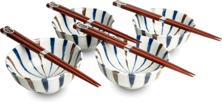 Edo Japan Stripes bowlset 12x5,5cm 4 personen |