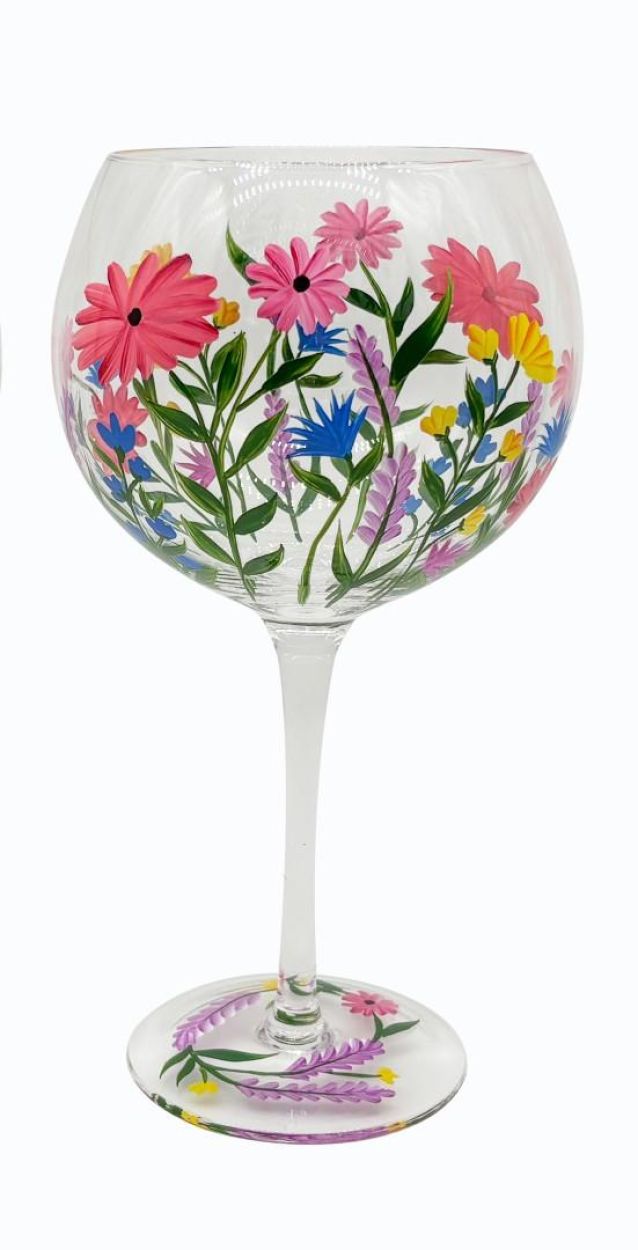 Geef je favoriete drankje een extra stijlvolle touch met dit verfijnde gin- en cocktailglas. Elk glas wordt met de hand beschilderd met elegante bloemen, zowel op het glas als op de voet. Daardoor is geen enkel glas identiek en krijgt elk stuk een uniek, ambachtelijk karakter.