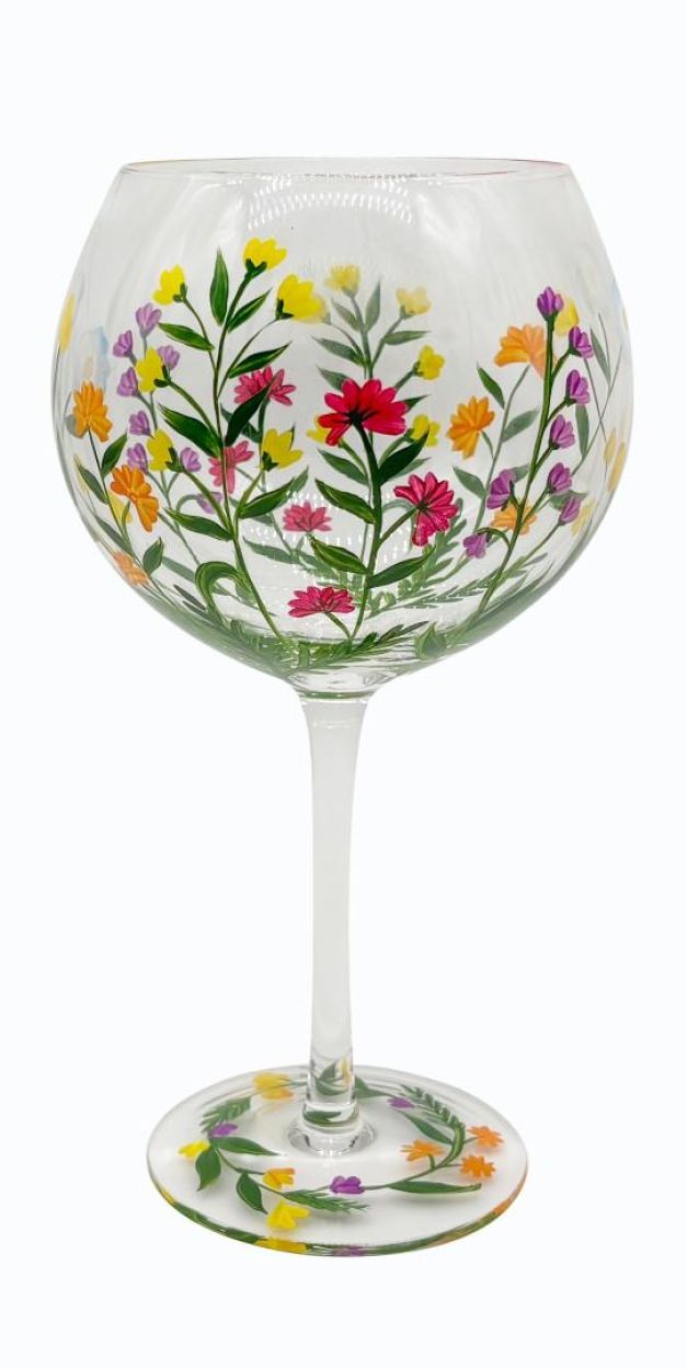 Geef je favoriete drankje een extra stijlvolle touch met dit verfijnde gin- en cocktailglas. Elk glas wordt met de hand beschilderd met elegante bloemen, zowel op het glas als op de voet. Daardoor is geen enkel glas identiek en krijgt elk stuk een uniek, ambachtelijk karakter.