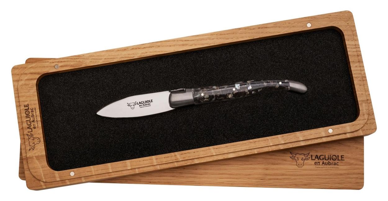 Laguiole en Aubrac Oestermes van inox - parelmoer zeeoorschelp |