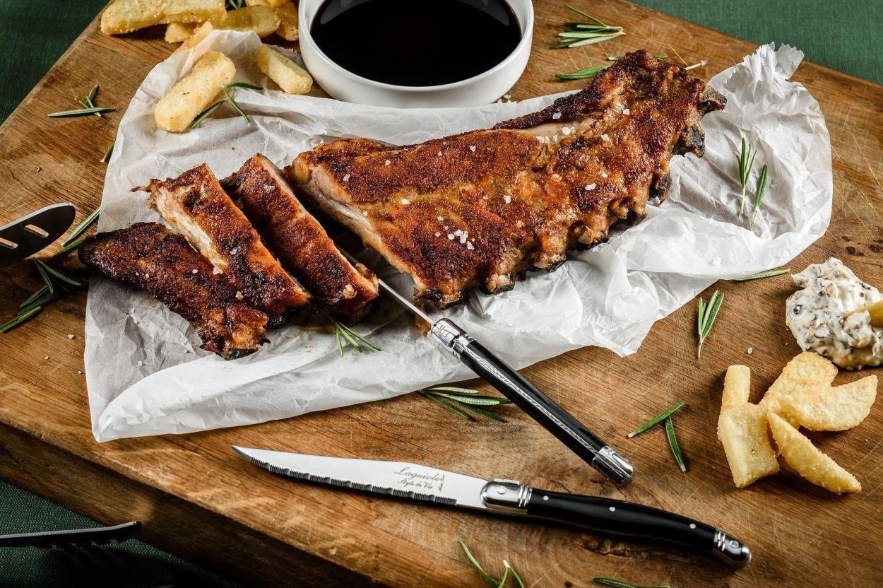 Met deze 6-delige steakmessenset uit de Black Premium Line van Laguiole Style de Vie snijd je elk stuk vlees moeiteloos en met stijl. De gekartelde lemmeten van roestvrij staal (1,8 mm dik) zorgen voor een precieze snede en blijven langdurig scherp.