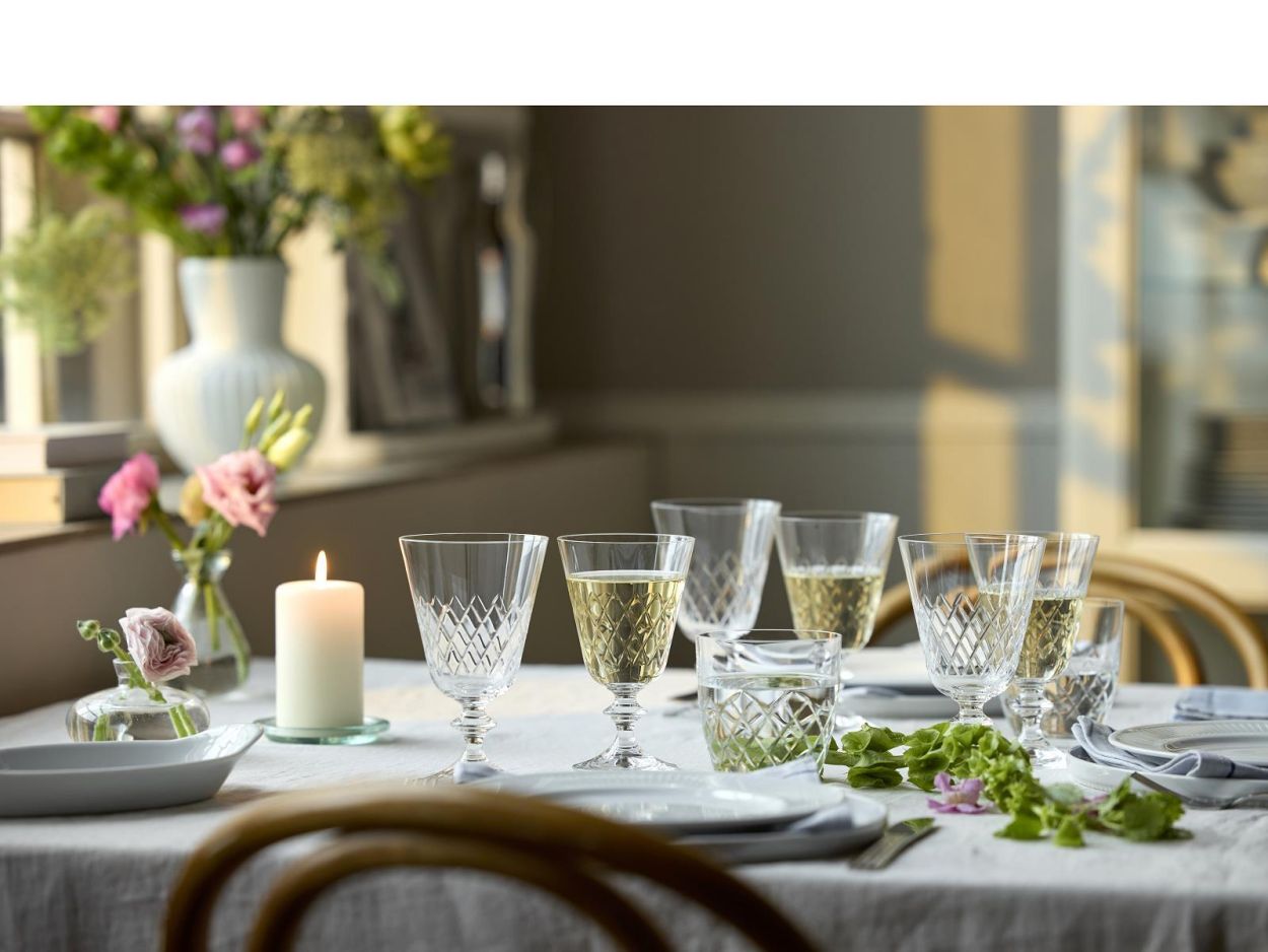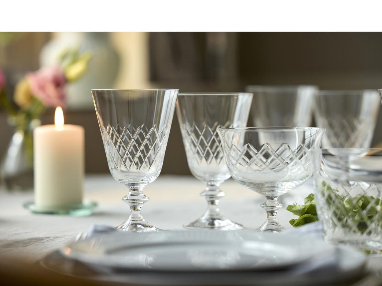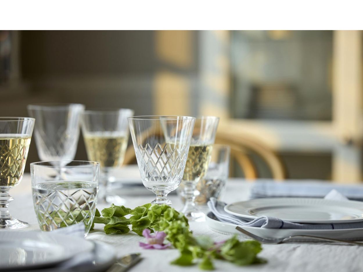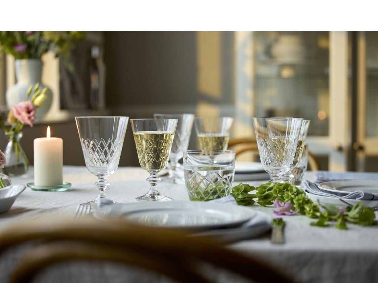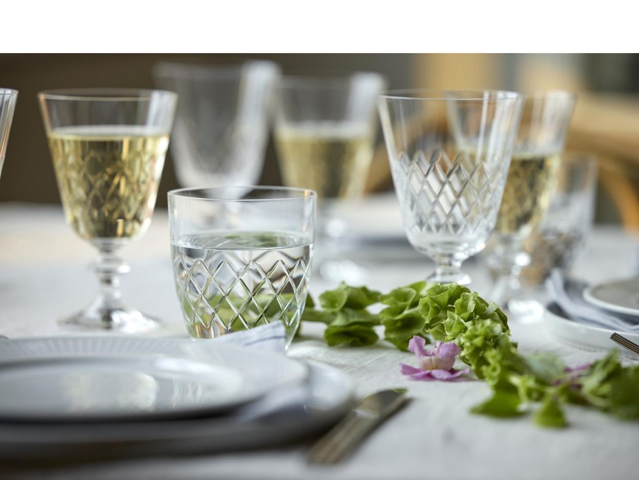 De Eaton-serie van Lyngby Glas is een moderne interpretatie van een designicoon uit de jaren 60. Met het kenmerkende ruitvormige patroon eert de serie het klassieke Eaton-glas en brengt tegelijkertijd een verfijnde esthetiek naar de hedendaagse tafel.