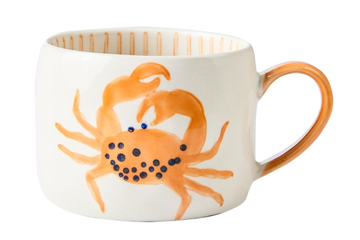 Geniet van je favoriete drank met deze handbeschilderde mok in krabdesign. Gemaakt van stevig stoneware en afgewerkt met oog voor detail. Een speels en maritiem accent voor elke koffiepauze.