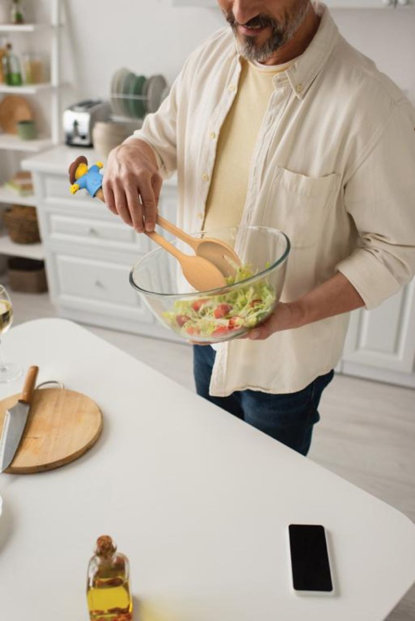 Ontmoet Sal, de slimme saladetang van Ototo die design en gemak perfect mixt. Twee houten lepels vormen samen een klassieke serveerset – maar zodra je Sal erbovenop plaatst, veranderen ze in een handige tang. Ideaal om salade te serveren zonder geklieder! Het siliconen opzetstuk is 100% voedselveilig, BPA-vrij en hittebestendig. Na gebruik kan Sal gewoon in de vaatwasser, terwijl de houten lepels met de hand schoon blijven. Slim, stijlvol en een tikkeltje brutaal – helemaal Ototo.