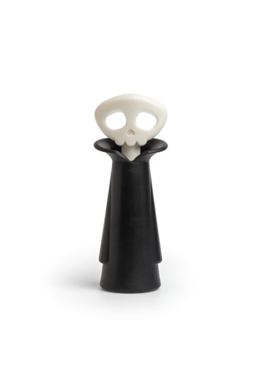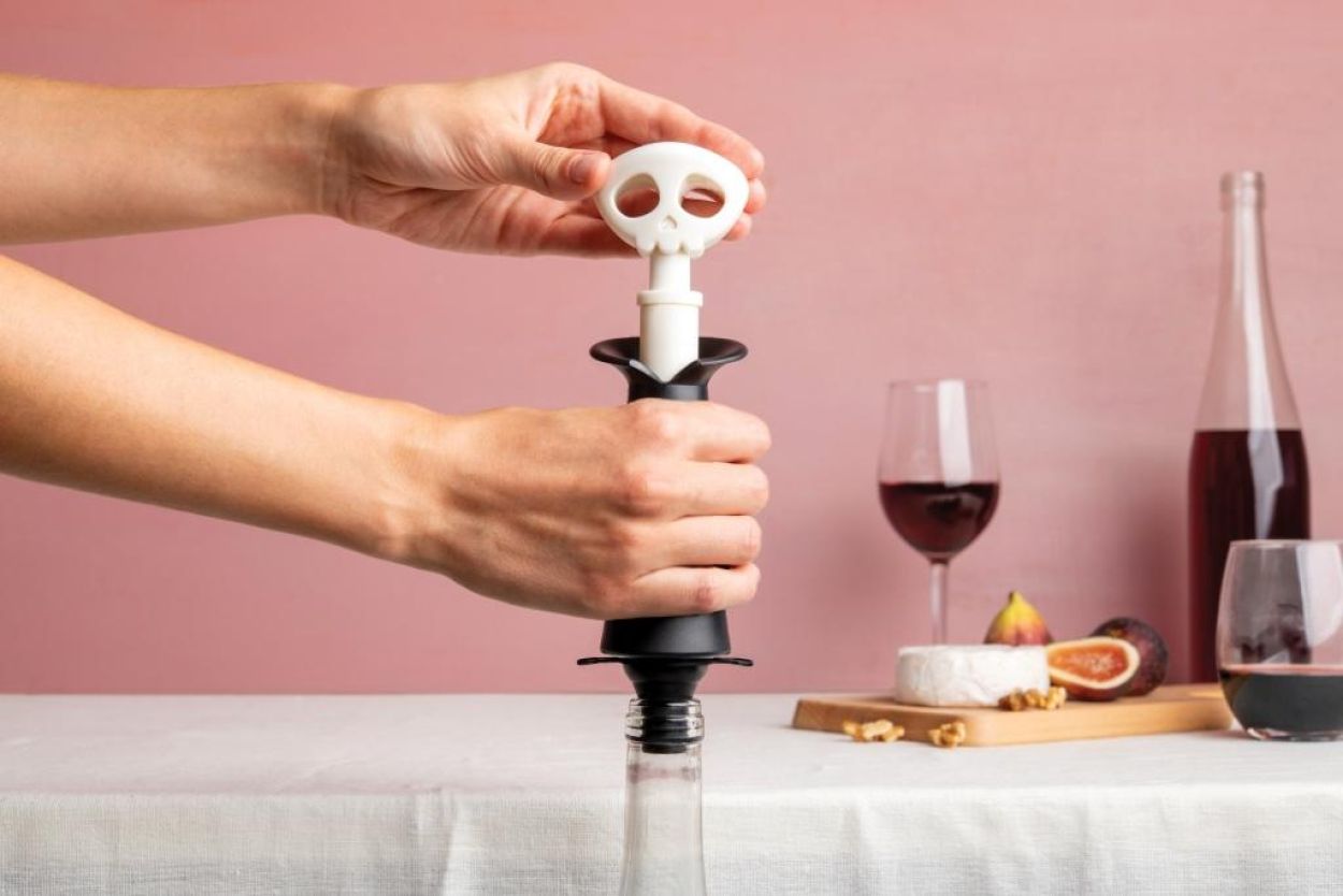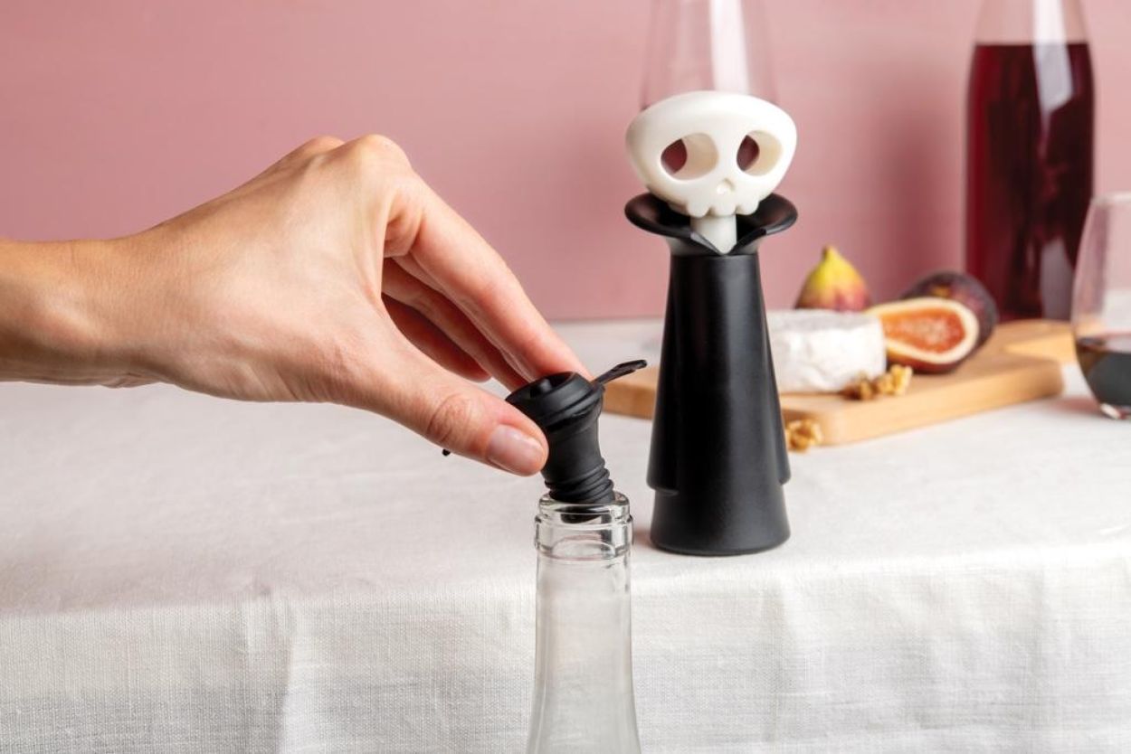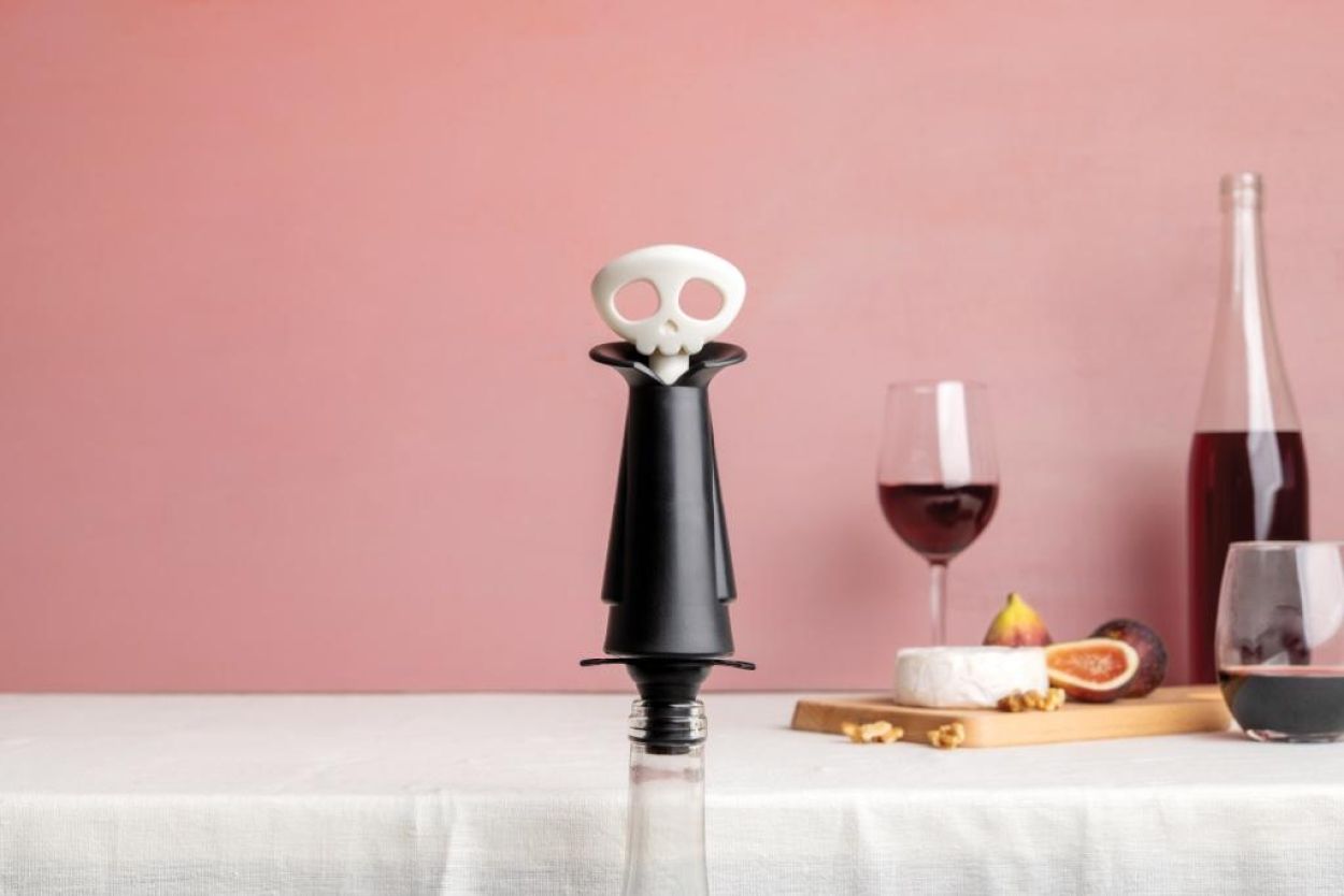 Met de Spookelier van Ototo voeg je een griezelige touch toe aan wijnflessen én houd je je wijn langer vers. Deze slimme set bevat een vacuümpomp en drie stoppers die lijken op vleermuizen. Het gebruik is kinderspel: plaats een stopper in de fles, trek de Spookelier een paar keer omhoog en creëer zo een vacuüm. Wanneer je een ‘klik’ hoort, weet je dat de fles perfect afgesloten is. Klaar met bewaren? Duw de knop opzij om het vacuüm vrij te geven. De stoppers kunnen gewoon in de vaatwasser, maar de pomp moet met de hand gewassen worden.