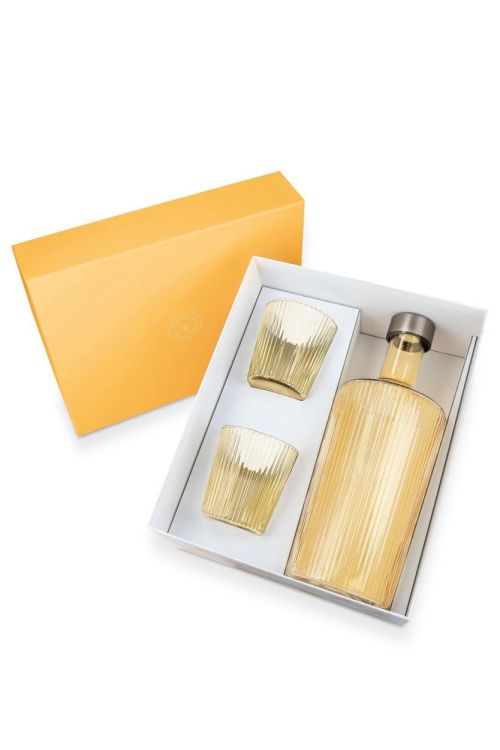 Een mooi en doordacht cadeau. De Cable set bestaat uit een mondgeblazen glazen fles en twee geribbelde glazen. Alles zit in een stevige, stijlvolle geschenkdoos.
