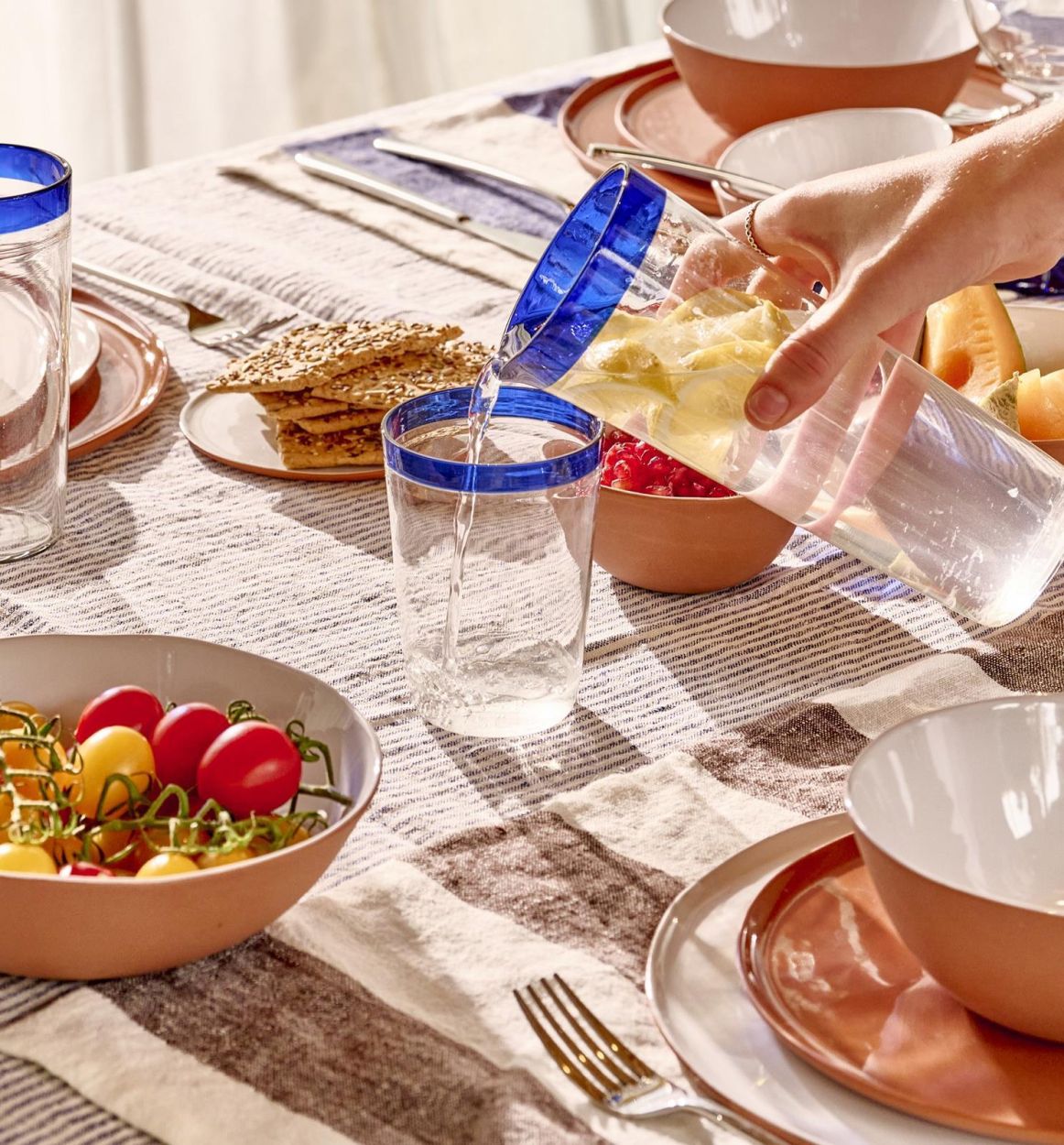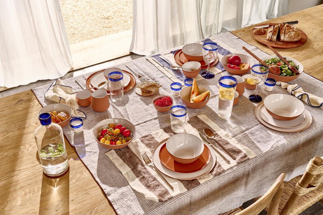 De betovering van Tarifa zit ook in de kleur: elk stuk heeft een subtiele tint, zichtbaar aan de bovenrand en bij de voet van de wijnglazen. Omdat het glas in de massa gekleurd is, blijven de kleuren mooi intact – zelfs na veelvuldig gebruik.