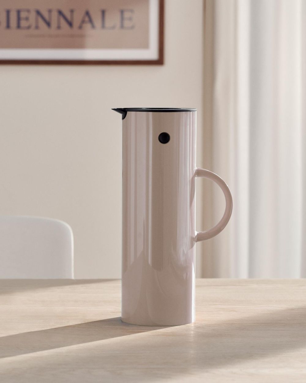 De EM77 werd in 1977 ontworpen door de Deense designer Erik Magnussen en geldt sindsdien als een wereldwijd designicoon. De karakteristieke wiekstopper maakt schenken eenvoudig, terwijl een extra schroefdop de kan geschikt maakt voor transport en picknicks. Het glazen binnenwerk houdt dranken urenlang warm of koud. Gemaakt in Denemarken en bekroond met diverse designprijzen.