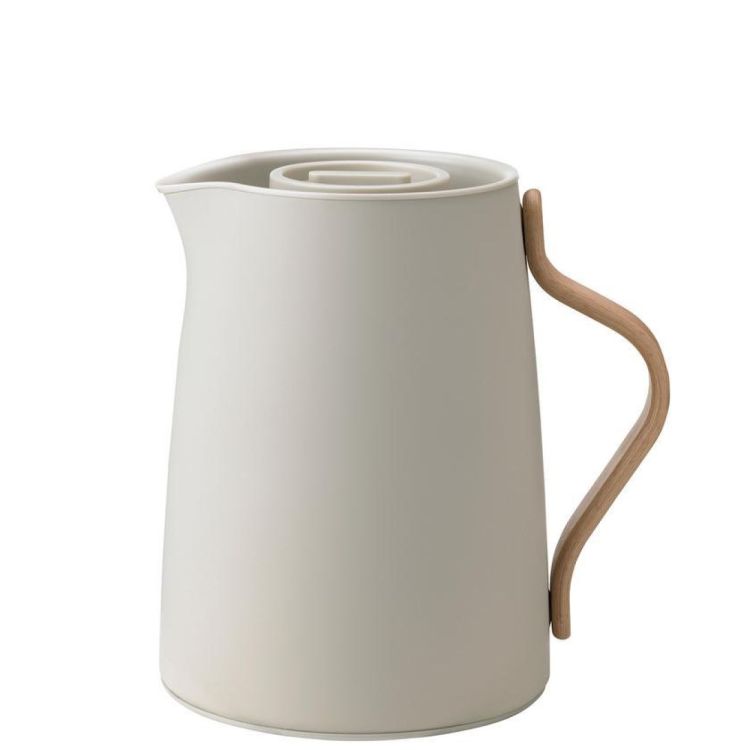 De kan is uitgevoerd in gelakt roestvrij staal in een zachte zandkleur en afgewerkt met een handgreep van Scandinavisch beukenhout. Dankzij het ingebouwde theefilter en het slimme draaisysteem stopt het thee-infusieproces automatisch zodra de gewenste sterkte is bereikt. Zo geniet je altijd van thee met de perfecte smaak.