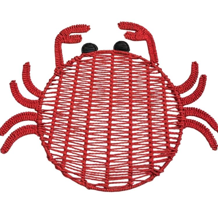 Breng een speelse en maritieme sfeer naar je tafel met onze rode krabvormige placemat, handgemaakt van natuurlijke papieren raffia. Dit unieke en duurzame ontwerp combineert functionaliteit met charme. De levendige rode kleur en de natuurlijke textuur maken het een perfecte keuze voor zowel dagelijks gebruik als speciale gelegenheden.