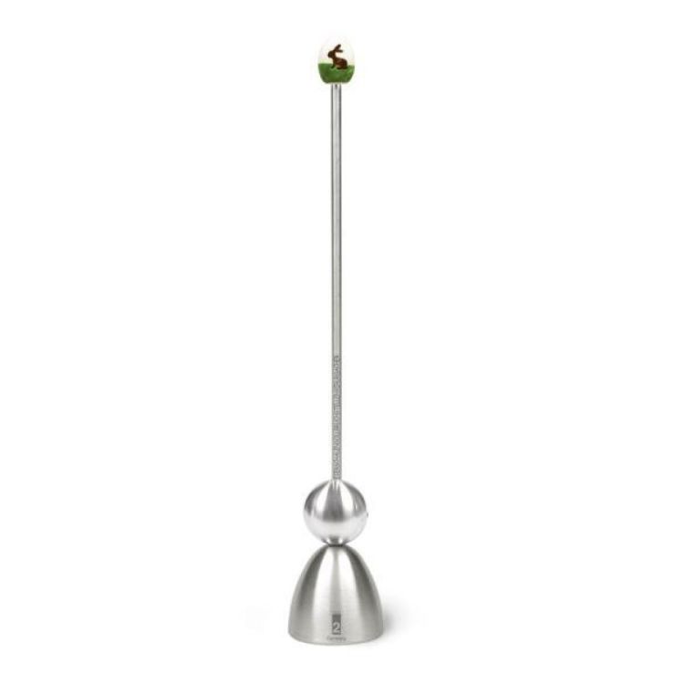 De eierschaalbreker "Clack" wordt als volgt gebruikt: plaats de metalen dop op het gekookte ei, trek de slagbal omhoog en laat hem eenvoudig vallen. Op de ontstane breeklijn kan de eierschaal optioneel worden verwijderd door lichtjes te kantelen met de "Clack" of door ander bestek te gebruiken.