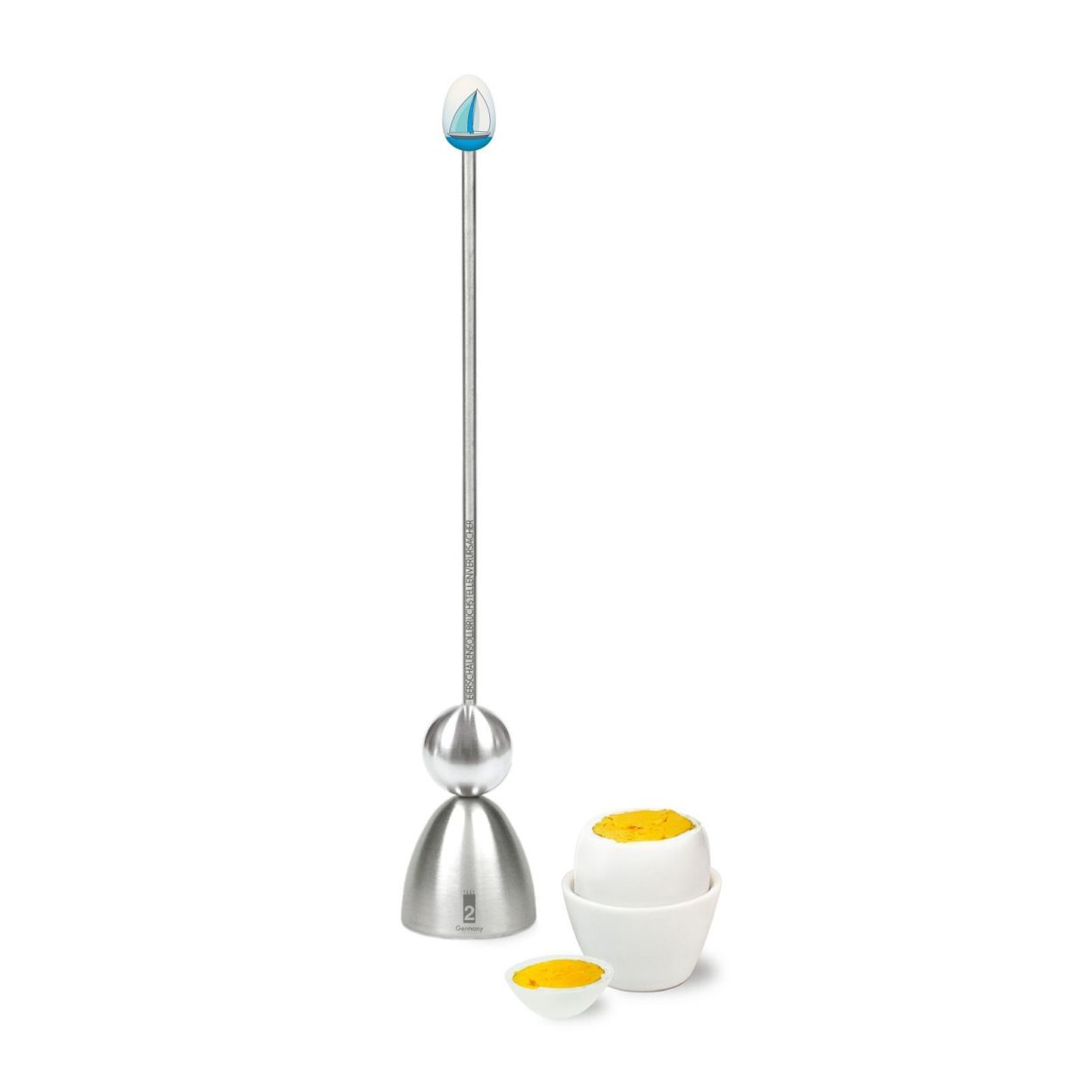De eierschaalbreker "Clack" wordt als volgt gebruikt: plaats de metalen dop op het gekookte ei, trek de slagbal omhoog en laat hem eenvoudig vallen. Op de ontstane breeklijn kan de eierschaal optioneel worden verwijderd door lichtjes te kantelen met de "Clack" of door ander bestek te gebruiken.