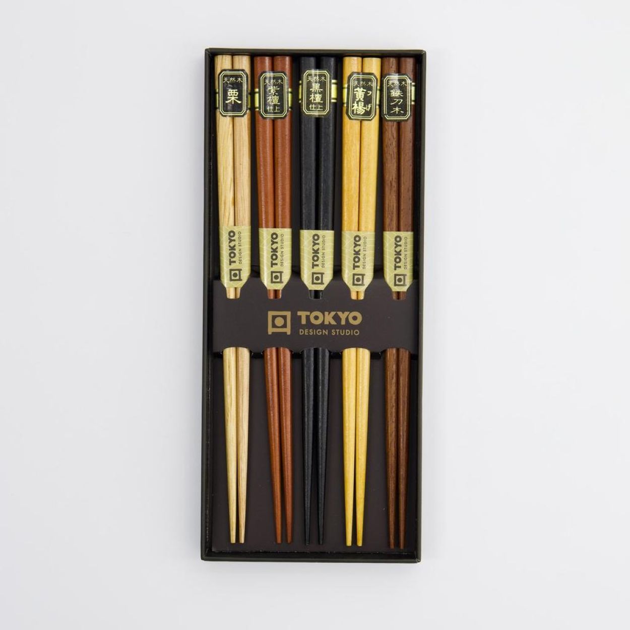 Set van 5 eetstokjes met decoratieve afwerking in Japanse stijl.