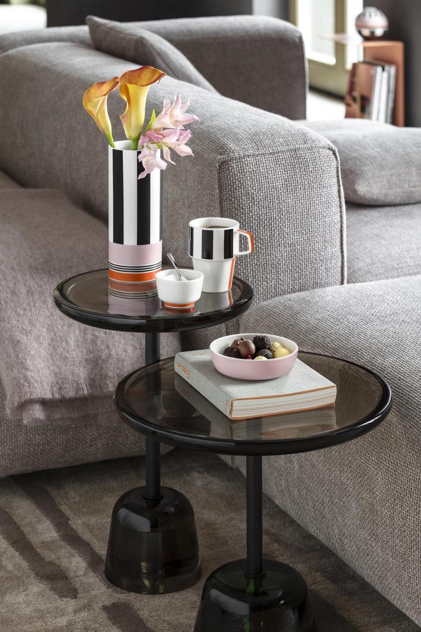 Vergeet beige borden en brave tafels. De Memphis-reeks is een visuele trip: kleurblokken, asymmetrische vormen en grafische knipogen die je tafel omtoveren tot een designstatement.