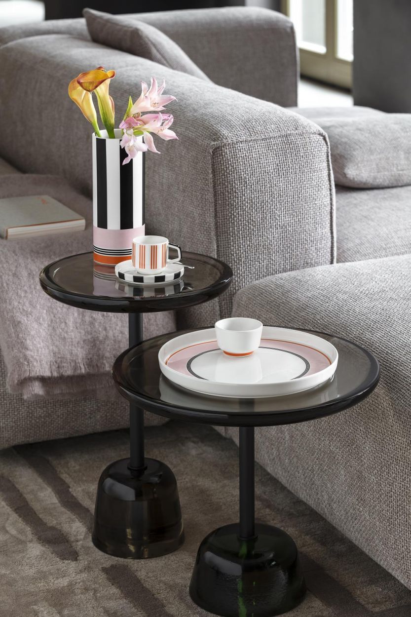 Vergeet beige borden en brave tafels. De Memphis-reeks is een visuele trip: kleurblokken, asymmetrische vormen en grafische knipogen die je tafel omtoveren tot een designstatement.