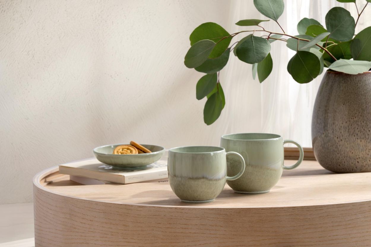 De Perlemore Alga collectie van Villeroy & Boch brengt een verfijnde rust in elke tafelsetting. De zachte groene kleur – geïnspireerd op zeealgen en het kalmerende effect van de natuur – vormt de perfecte basis voor een harmonieuze en eigentijdse tafelaankleding. Het matte glazuur met subtiel parelmoereffect geeft elk item een unieke, zachte glans die verandert met het licht en de omgeving.
