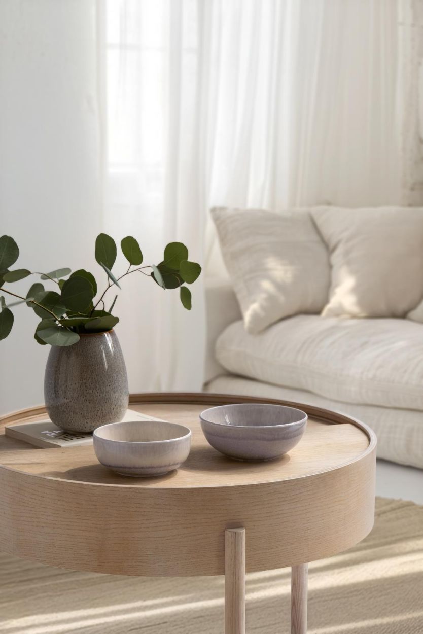 Wat deze collectie uniek maakt, is de ambachtelijke uitstraling. Door het gebruik van natuurlijke pigmenten en reactief glazuur krijgt elk bord, kopje of schaaltje subtiele kleurvariaties – geen enkel stuk is precies gelijk. De zachte ronde vormen en licht opstaande randen geven de collectie een moderne en toegankelijke uitstraling die mooi samengaat met andere collecties of natuurlijke materialen zoals hout, keramiek en textiel.