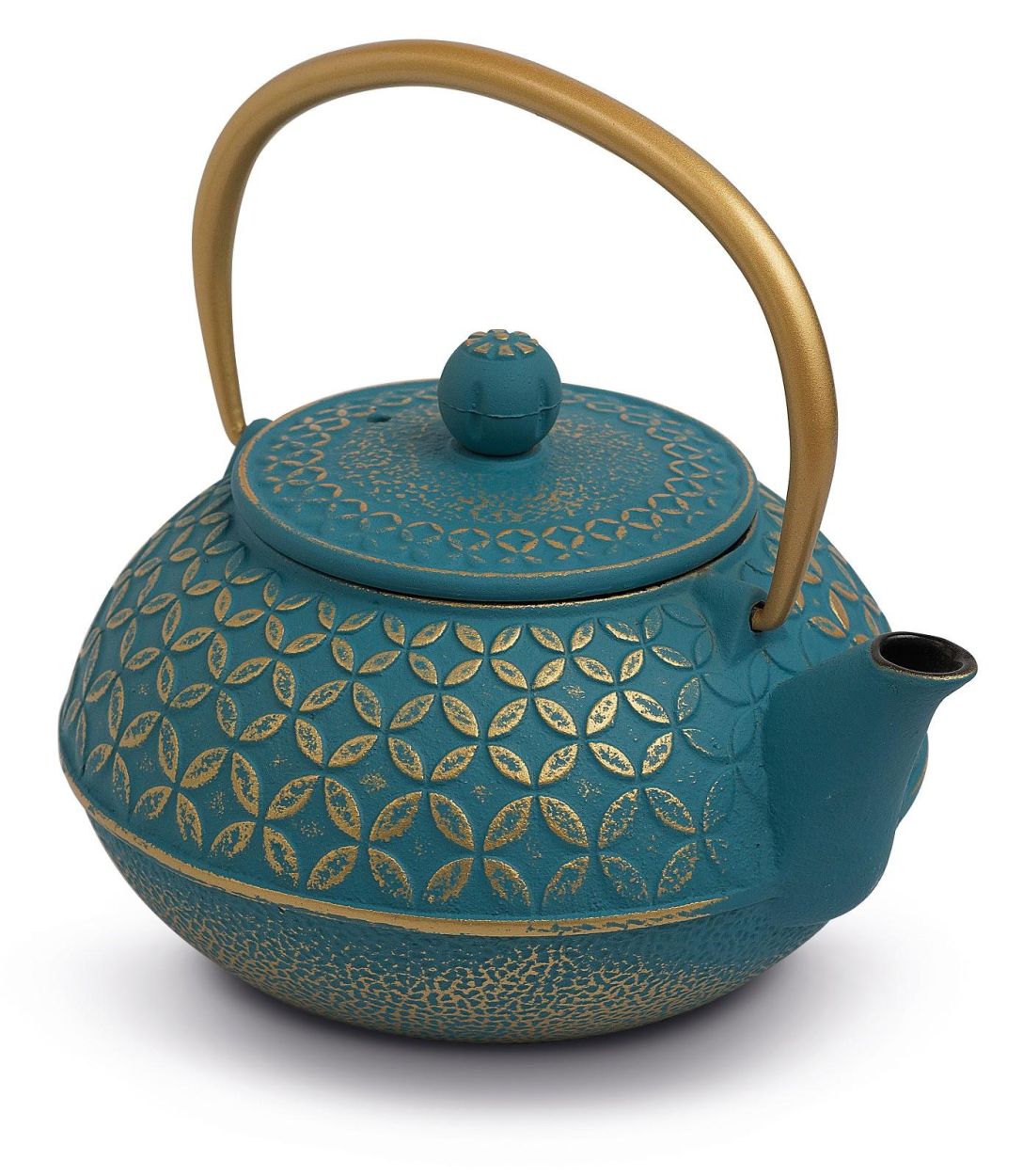 Deze gietijzeren theepot heeft een mooi, klassiek ontwerp met subtiele gouden details die het geheel een elegante uitstraling geven. Dankzij de gelijkmatige wanddikte houdt gietijzer de warmte uitstekend vast, waardoor je thee langer warm blijft en beter op smaak komt.