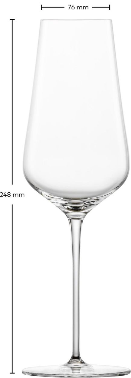 De 2 DUO Hybrid champagneglazen van Zwiesel Glas zijn ontworpen om bijzondere momenten een extra sprankelend accent te geven. Met een hoogte van 25 centimeter bieden deze glazen een indrukwekkend, elegant silhouet dat op elke feestelijke tafel direct in het oog springt.