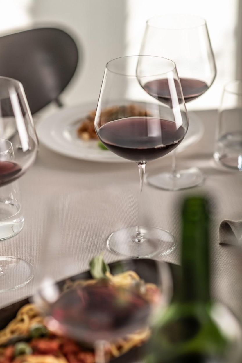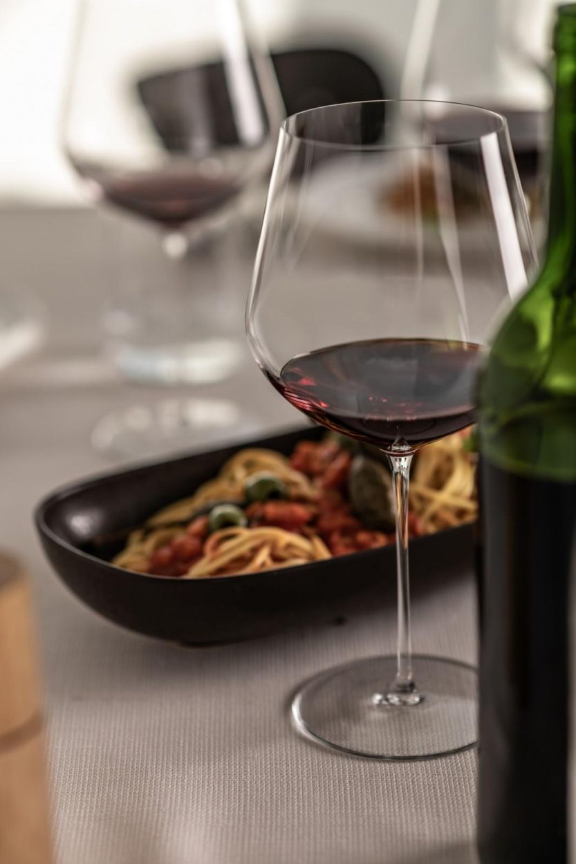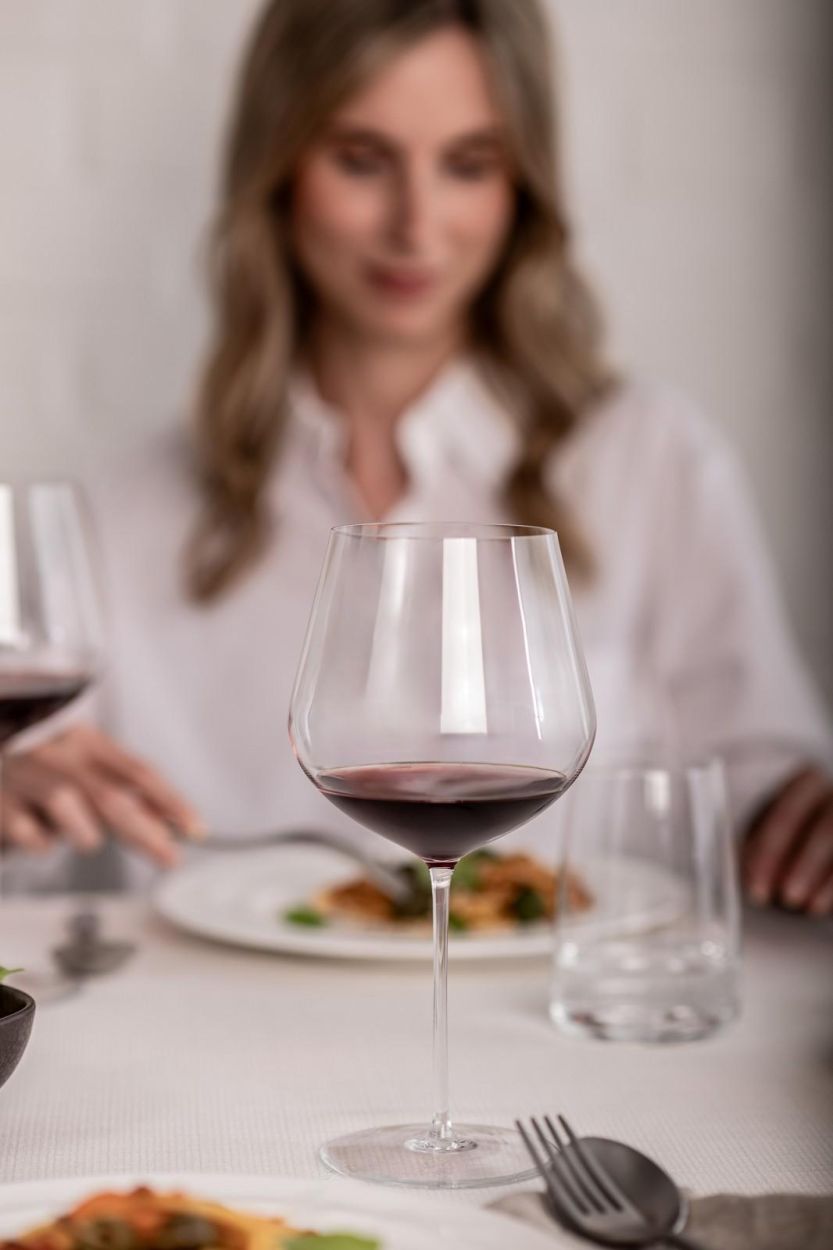 De universele, perfect uitgebalanceerde kelk is geschikt voor zowel rode als witte wijnen en laat aroma’s zich harmonieus ontvouwen. De dunne wand en de fijn bewerkte mondrand zorgen ervoor dat de wijn zacht over het gehemelte glijdt, terwijl de getrokken steel en brede voet stabiliteit en elegantie combineren.