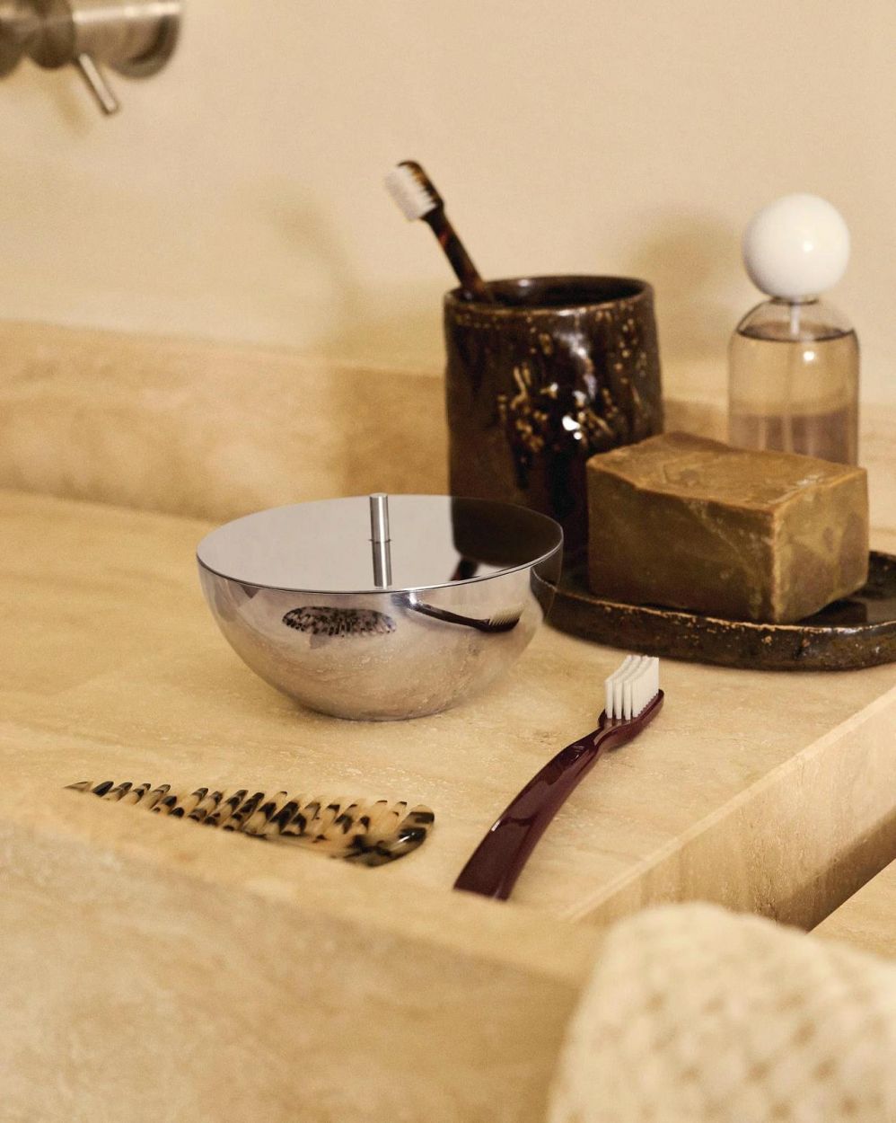 De Rocc houder small van Michael Anastassiades is een subtiel statement in roestvrij staal – compact, verfijnd en met een serene glans die het licht zacht weerkaatst.