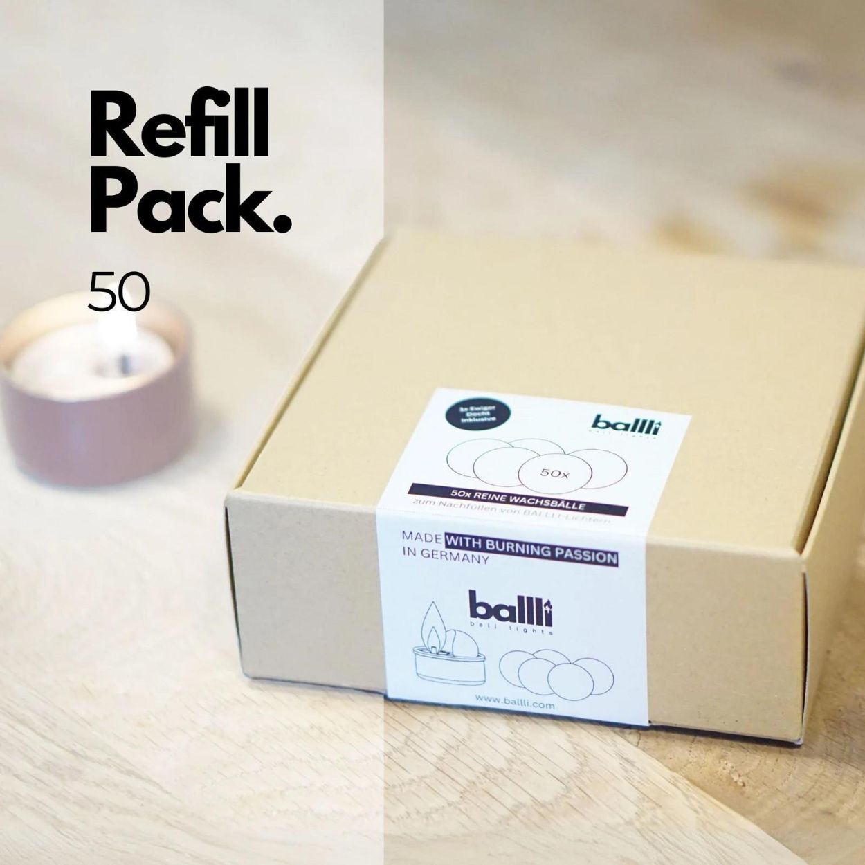 Met de Ballli Refill-pack zorg je ervoor dat je favoriete theelicht nooit zonder kaarsvet komt te zitten. Deze set bevat maar liefst 50 navulbollen van hoogwaardig, schoon kaarsvet – speciaal gemaakt om perfect te smelten en je Ballli theelicht keer op keer te laten stralen.