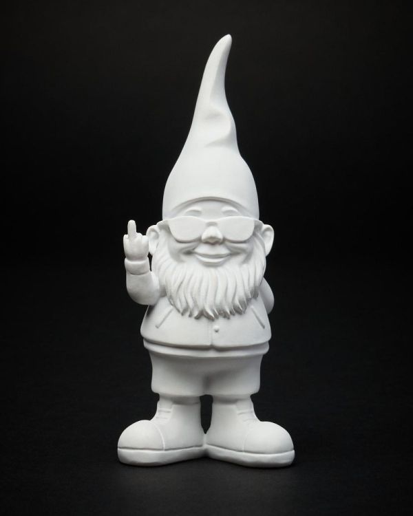 12 centimeter grof gegoten eerlijkheid. Deze kabouter steekt z’n vinger op waar jij misschien nog netjes zou blijven glimlachen. Lomp, lollig en verrassend verfijnd.