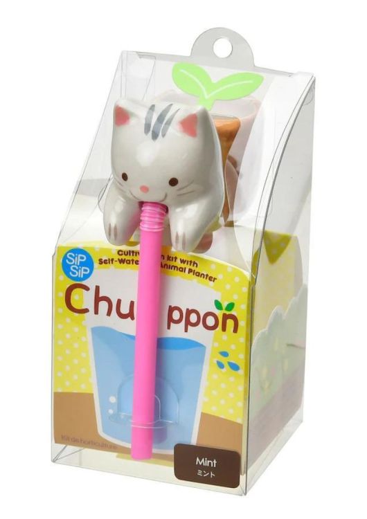 De vrolijke kat nipt uit je glas en geeft tegelijkertijd water aan het muntplantje op zijn rug. Een speels én groen cadeautje dat altijd een glimlach oproept. Inclusief zaadjes, turftablet en instructies. Gemaakt in Japan.