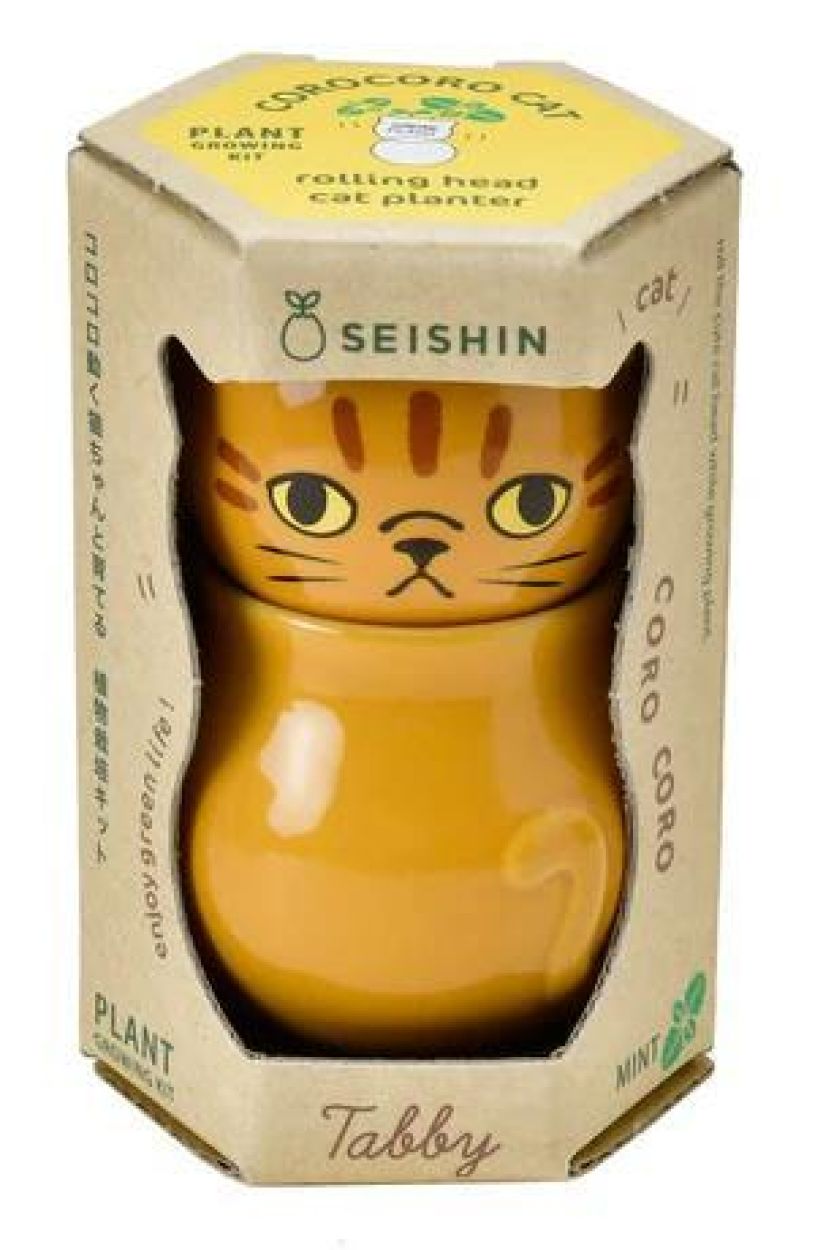 De ondeugende ginger Corocoro Cat kan zijn koppie kantelen en zo van blik of humeur veranderen. Terwijl hij “rolt”, zuigt de lont water op uit zijn lichaam en geeft dit automatisch door aan het plantje op zijn rug: frisse pepermunt. Geleverd met zaadjes, groeimedium en instructies.