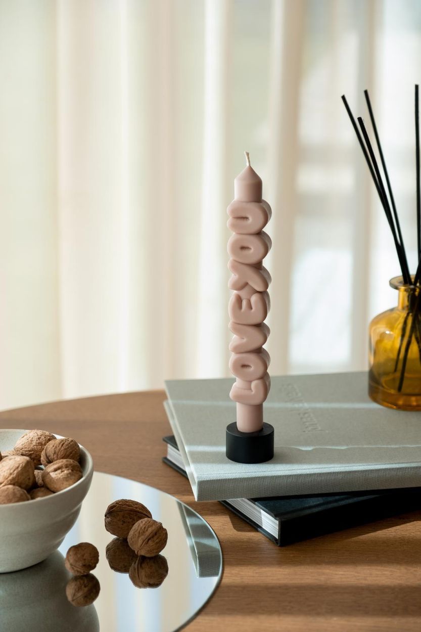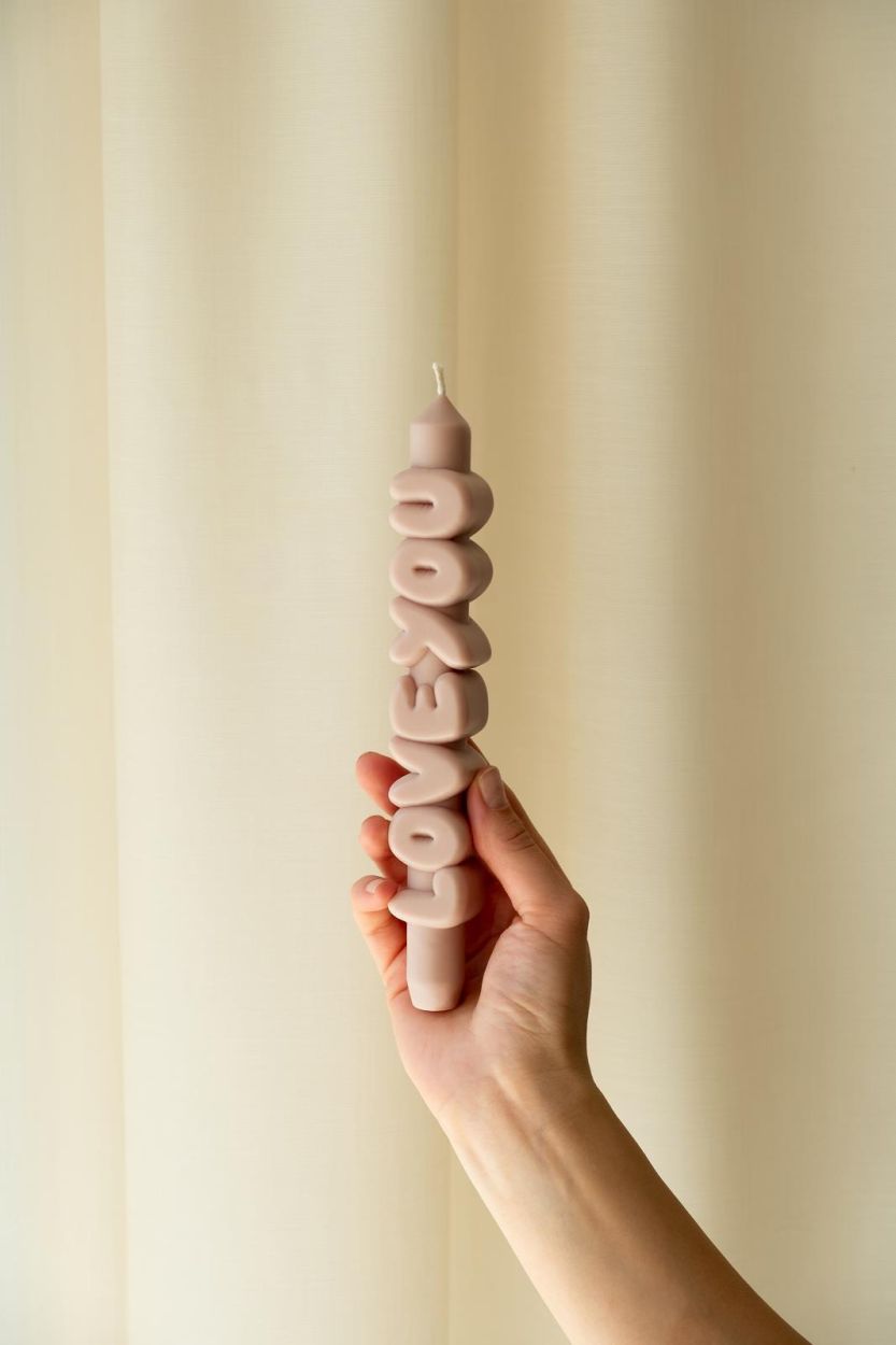 Een handgemaakte dinerkaars met een duidelijke boodschap. Elk stuk wordt met zorg vervaardigd, van vorm tot afwerking, waardoor kleine variaties in kleur en details mogelijk zijn. De kaars is gemaakt van een mix van soja- en paraffinewas met een katoenen lont, en past in elke standaard kaarsenhouder.