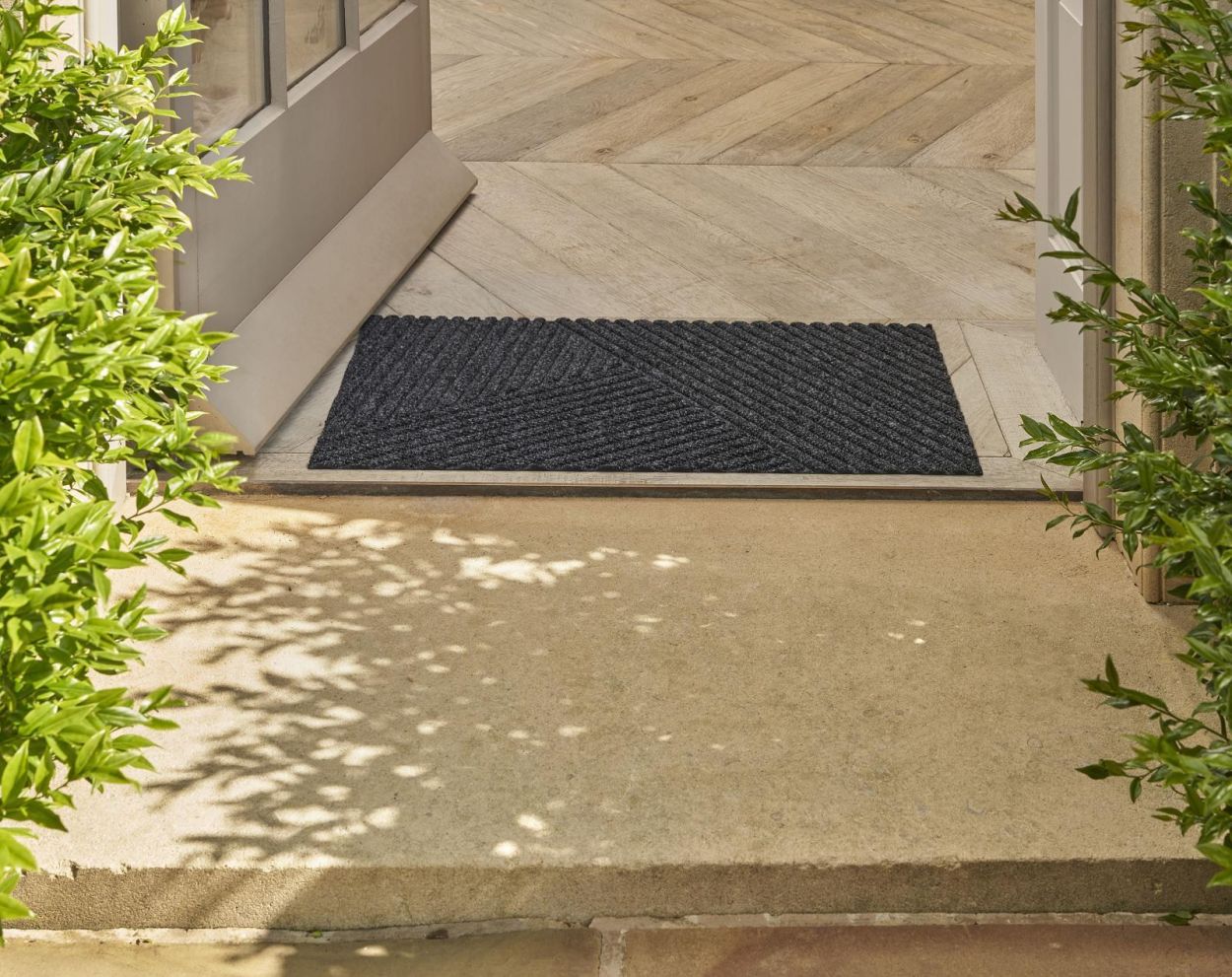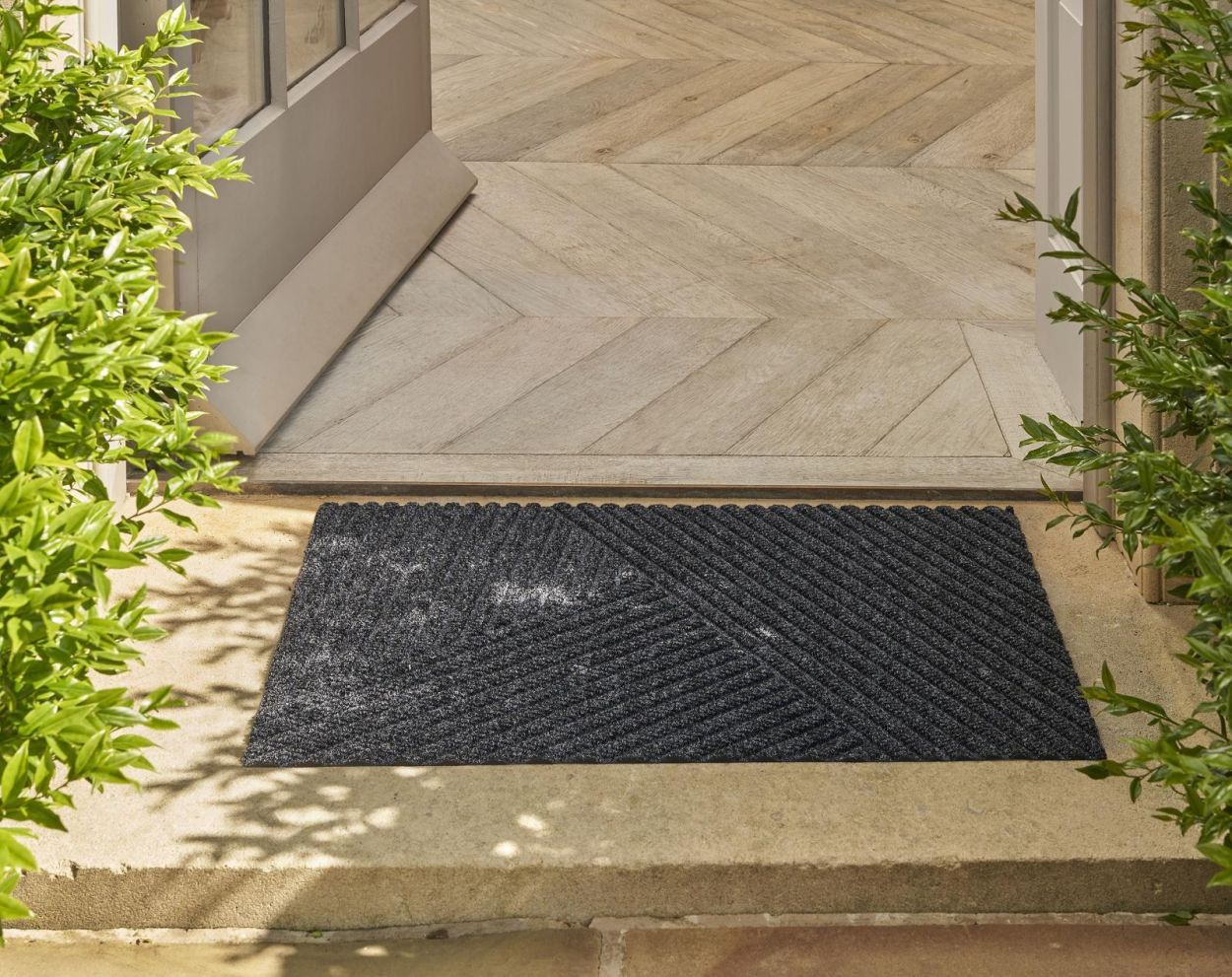 De DUNE mat is ontworpen voor zowel binnen- als buitengebruik. Dankzij de unieke 3D-structuur vangt en voert het water efficiënt af via de diepere groeven. Dit zorgt voor een droog en schoon oppervlak, zelfs bij regenachtig weer. Naast de functionele eigenschappen is de DUNE mat ook een duurzame keuze, gemaakt van gerecyclede materialen.