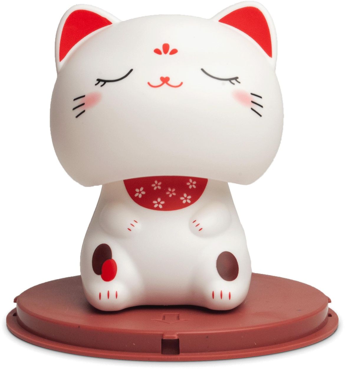 De Lucky Cat Eyes Closed knikt vrolijk dankzij ingebouwde zonne-energie. Geen batterijen nodig: een beetje licht is genoeg om haar gelukbrengende beweging tot leven te wekken. Leuk voor op bureau, kast, balie of vensterbank — een charmant detail dat altijd glimlachen uitlokt.