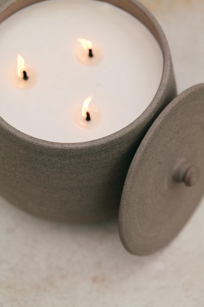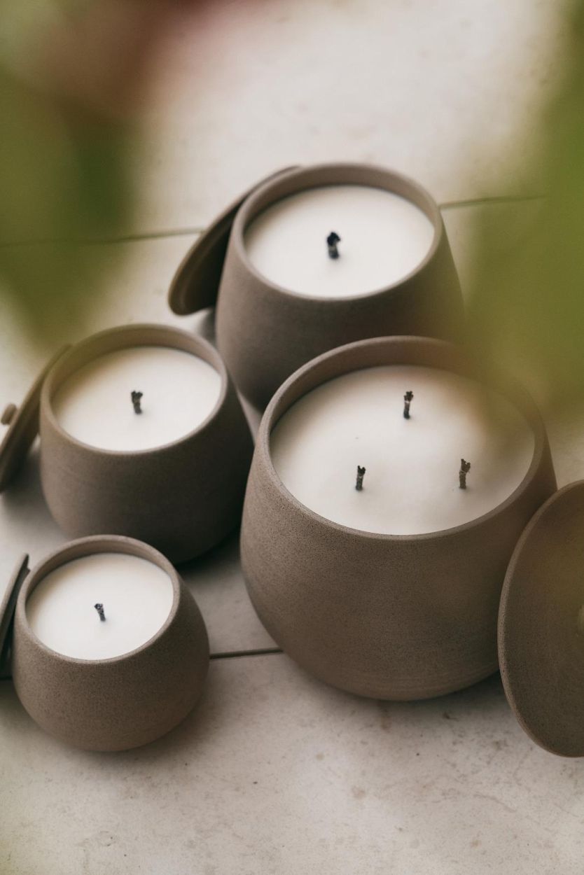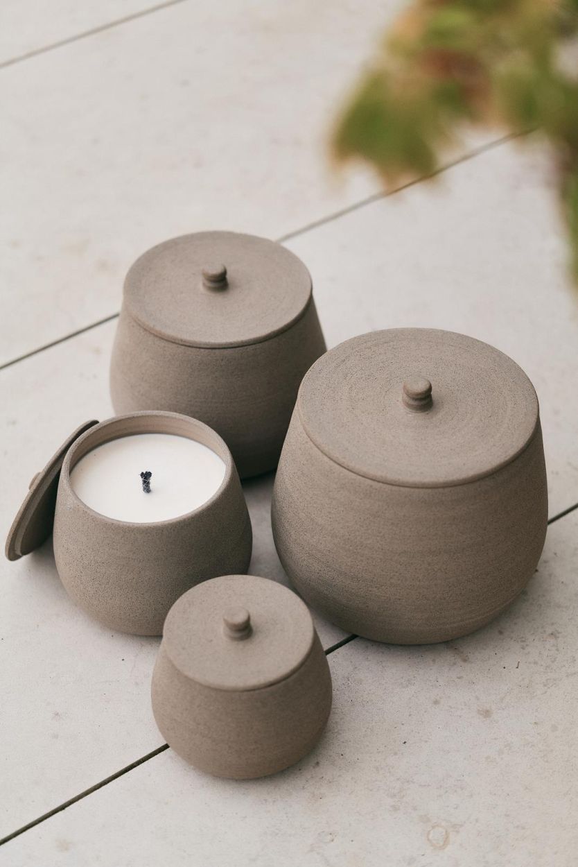 Voor Fumaci's derde collectie hebben ze zich laten inspireren door de warme, zachte texturen die ze om zich heen zien in de natuur. De Sole buitenkaars van Fumaci is niet zomaar een buitenkaars, het is een ware ode aan de natuur. Met haar ronde vorm en natuurlijke tinten van terracotta, greige en zwart brengt deze kaars een warme sfeer tijdens gezellige zomeravonden. Het bijpassende deksel beschermt de lont tegen weersinvloeden, waardoor de kaars afgedekt blijft en je er maximaal van kunt genieten.