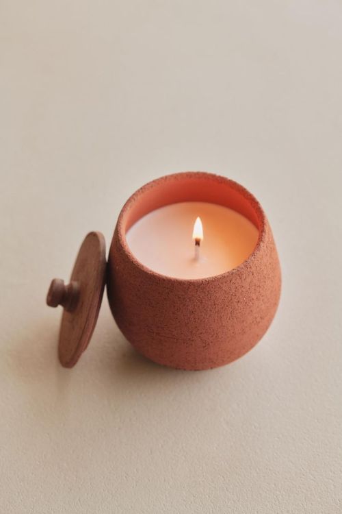 De Sole binnenkaars van Fumaci is niet zomaar een geurkaars, het is een ware ode aan de natuur. Met haar ronde vorm en natuurlijke tinten van terracotta, greige en zwart brengt deze kaars een warme sfeer tijdens gezellige avonden. Het bijpassende deksel zorgt er voor dat de kaars afgedekt blijft en je er maximaal van kunt genieten.