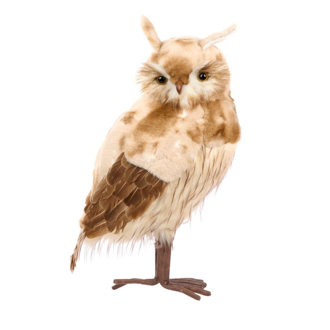 Met zijn statige blik en prachtige veren lijkt deze uil zo uit een betoverd bos te zijn gevlogen. De afwerking is tot in detail verfijnd – elegant, zacht en vol karakter. Een magische verschijning in elke ruimte.
