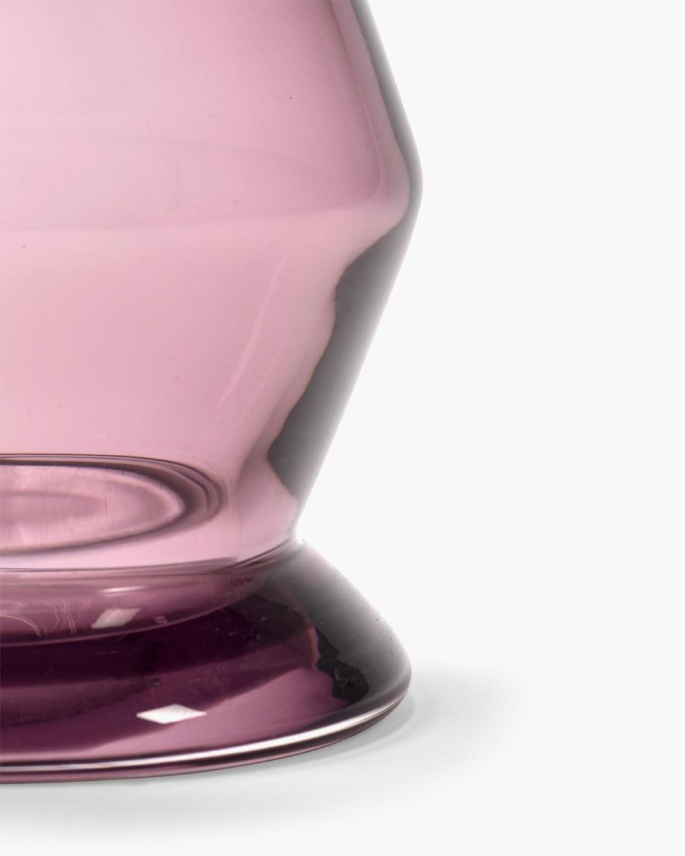De Marie-Ann vaas van Marie Michielssen vertaalt een archetypische vorm naar lichtpaars glas. Deze materiaalovergang van ruw rood aardewerk naar gladde transparantie creëert een opvallend contrast binnen de collectie. Een verfijnd statementstuk met een subtiele maar expressieve uitstraling.