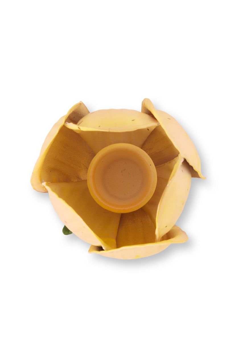 Laat je interieur tot leven komen met de kaarsenhouder in de vorm van een bloem. Deze elegante kaarsenhouder, geïnspireerd op de zachte lijnen uit de natuur, brengt op een subtiele manier warmte en sfeer in huis. Gemaakt van metaal en afgewerkt in een warme tint, vormt hij een stijlvolle basis voor je favoriete dinerkaars.