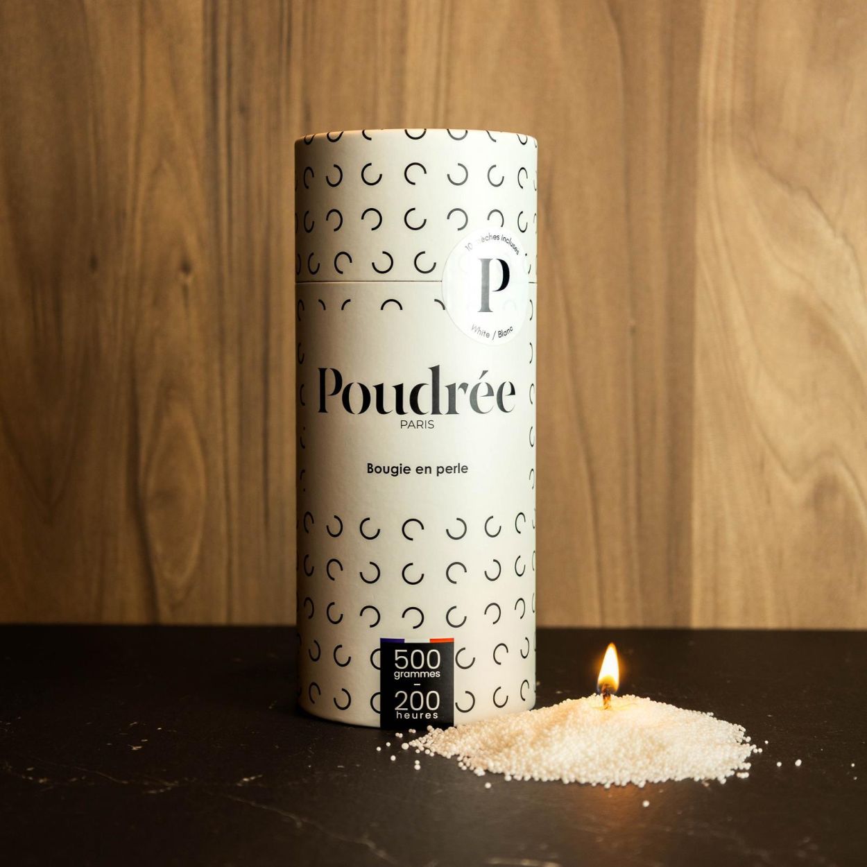 Maak je eigen kaars in een handomdraai! Met het Kaarsenzand van Poudrée Paris tover je elk potje of glaasje om tot een stijlvolle, herbruikbare kaars. Gemaakt van 100% natuurlijke, plantaardige was, zonder paraffine of zwarte rook.