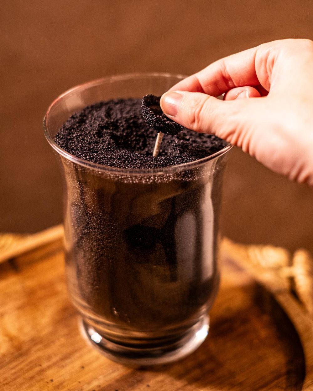3. Steek een van de 10 meegeleverde lontjes in het midden en steek aan.