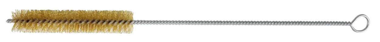 Twistborstel met een borstelkop van messingdraad, lengte 30 cm. Het borsteldeel is 10 cm lang en geschikt voor intensief schoonmaken van stevige oppervlakken. Niet gebruiken op gladde of krasgevoelige materialen; altijd eerst op een onopvallende plek testen.