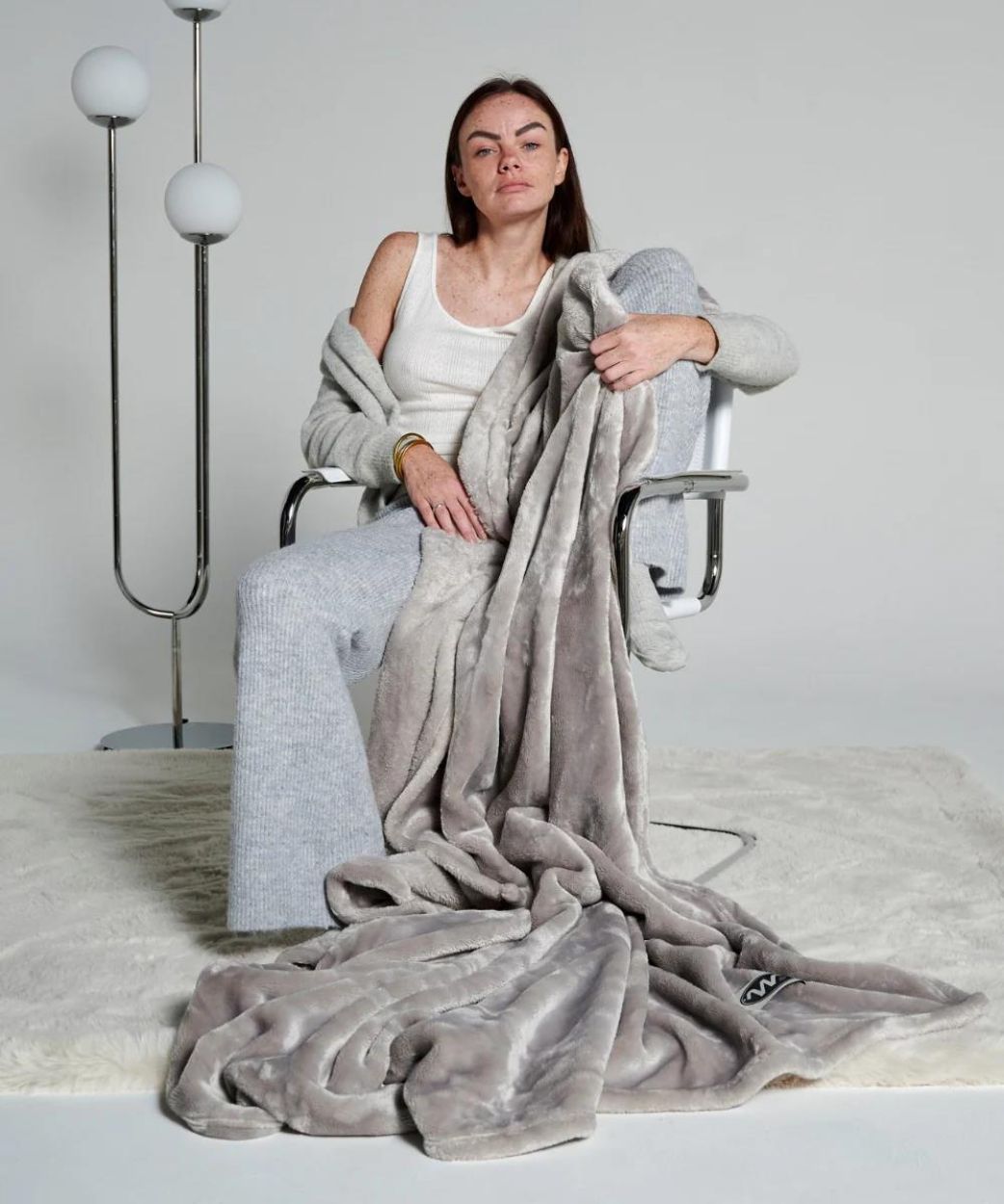 Met een formaat van 150 x 200 cm blijft het plaid ruim genoeg om volledig in weg te kruipen, thuis of onderweg. De satijnachtige afwerking geeft het grijs een subtiele glans die zich moeiteloos aanpast aan elk interieur – van minimalistisch tot warm en uitnodigend.